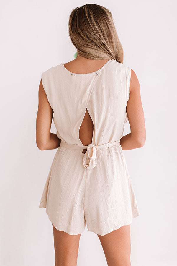 You will feel a sweet sensation when you wear this iced latte romper featuring a gathered waist with a tie front and a wrap back with a two button closure at the neck leaving a lower back cutout! This neutral piece styles beautifully with pops of color or with leopard print accents like our "Celeste Leopard Heel" and "Leopard Perfection Clutch!" Measurements