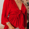- Deep V-Cut Neckline with a Tie Closure Bodice