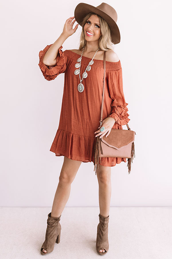 Sweet Sippin' Shift Dress In Rust
