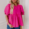 - Give your OOTD a sweet vibe with this adorable top! Trendy ricrac and playful puff sleeves make this piece perfect for creating stylish looks that are full of charm. - Unlined material - Ricrac trim - A scalloped crew cut neckline with back button closure and a keyhole detail - Short puff sleeves with elastic ruffled cuffs - A relaxed silhouette that ends in a peplum hemline