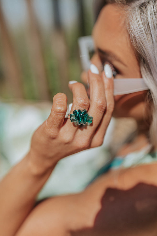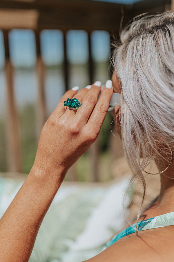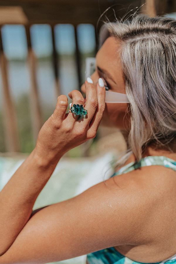 Add a trendy accessory to your look with our cute turquoise hued resin 'Sweet Tea And Harmony Ring' featuring a large statement chain!