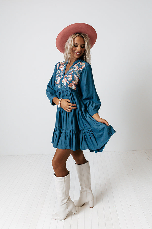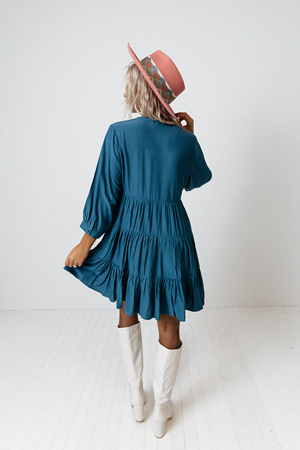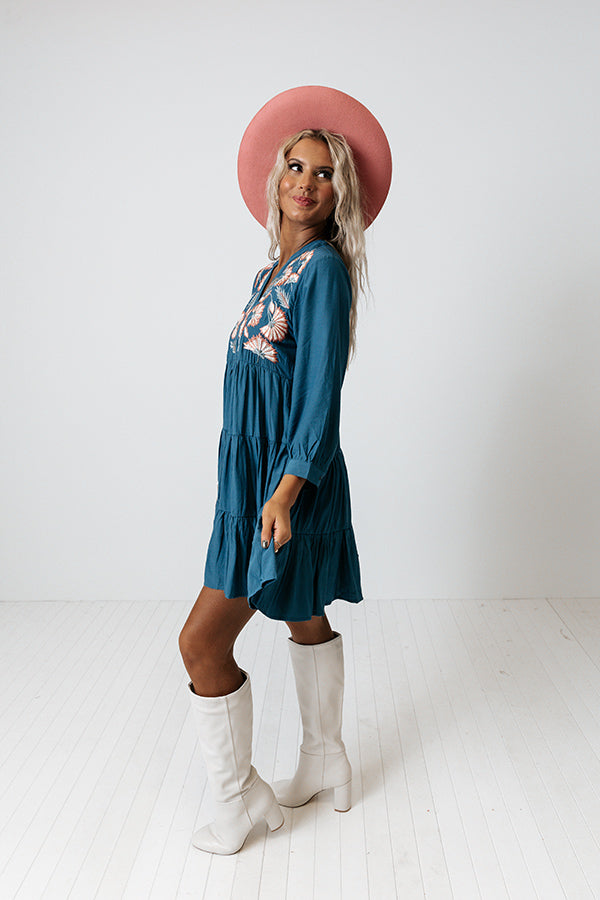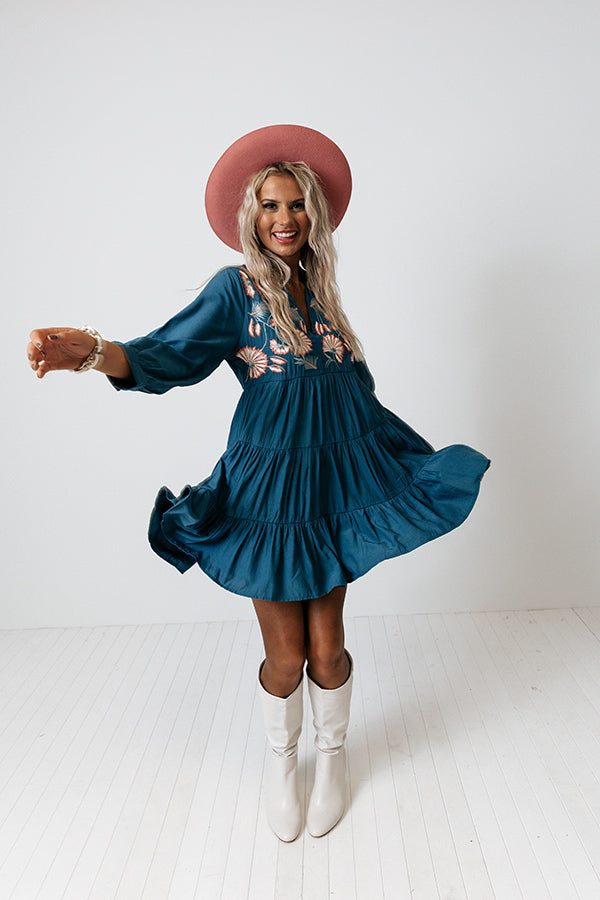 Sweet Touch Embroidered Babydoll Dress In Teal