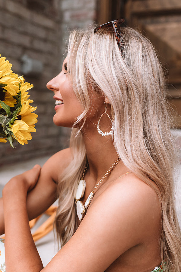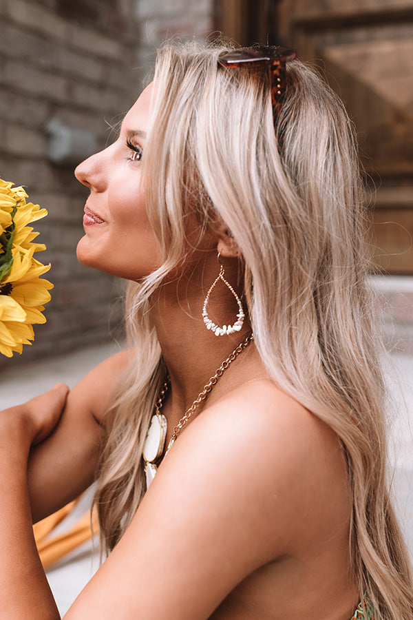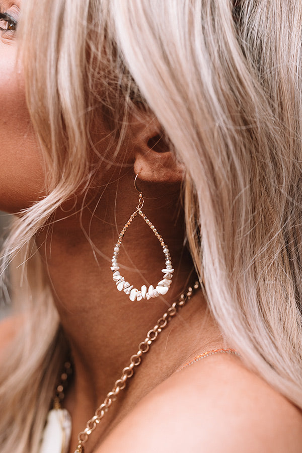 It will surely be a "sweet treat" when you accessorize with these adorable statement earrings featuring dainty gold teardrop hoops with ivory colored beaded detailing!
