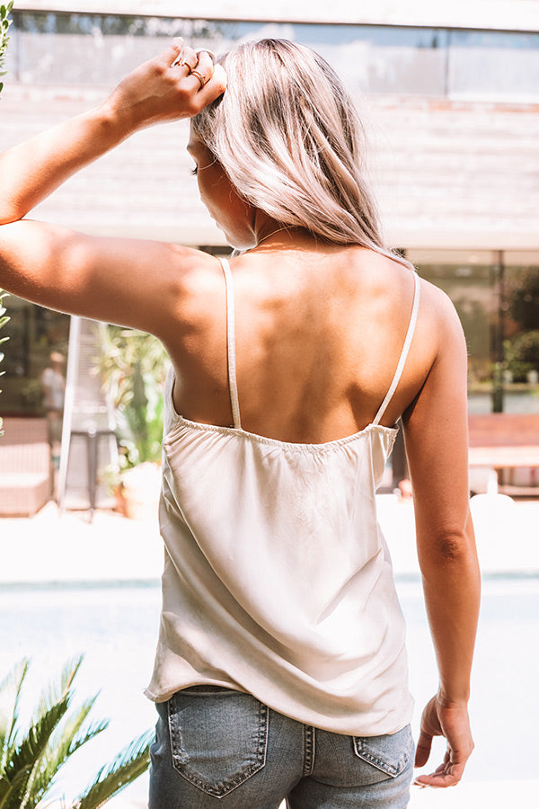 Keep it simple in our adorable birch colored "Sweet Whispers Tank" featuring lightweight breezy material, a v-cut neckline with intricate lace trim detailing, spaghetti straps with a low open back, and a relaxed silhouette that falls into a rounded hemline! This upscale basic styles perfectly with some distressed ankle skinnies, neutral heels, and matching sunnies, but you can also wear it layered under our "Call Of The Wild Satin Snake Print Overlay" with some frayed black shorts, "The Wynn Wedge in Birch," and our "Solo Trip Faux Leather Tote in Black!" Measurements