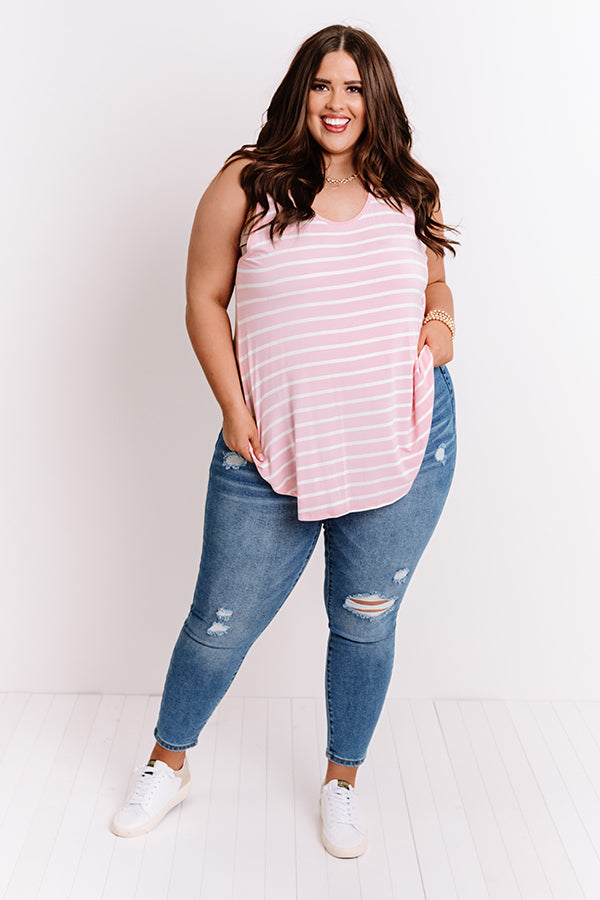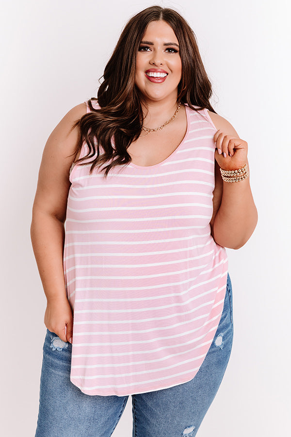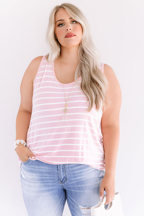 Plus Size - Everyone knows you look sweeter in stripes, so don't hesitate to add this casual cute pink shift tank to your cart! It features soft lightweight material with horizontal white accent stripes, a scooped neckline, 1-inch sleeveless shoulder straps, and a relaxed silhouette that falls into a rounded tunic-length hemline!