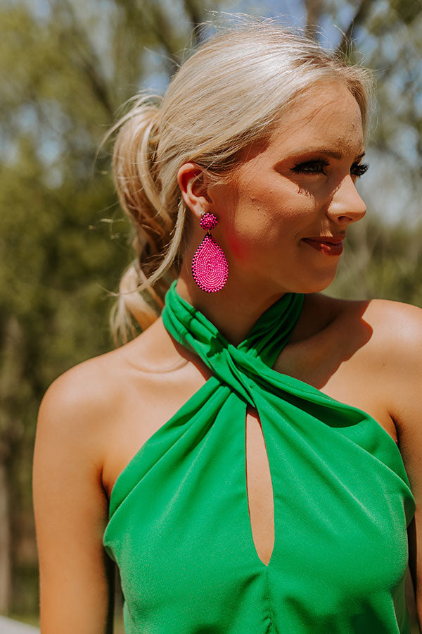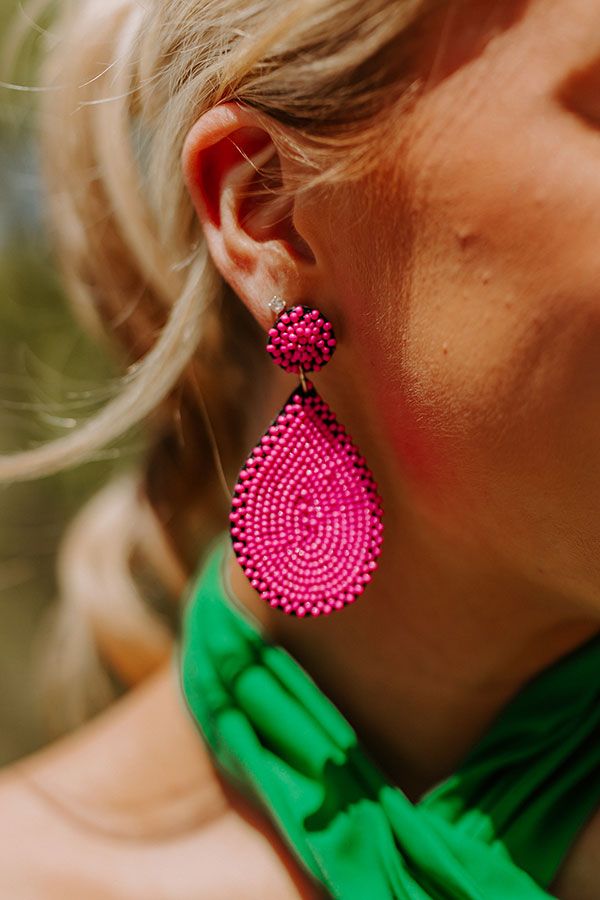 May all your sweetest drams come true with these beautiful earrings featuring hot pink beaded circle studs and large dangling teardrop pendants!