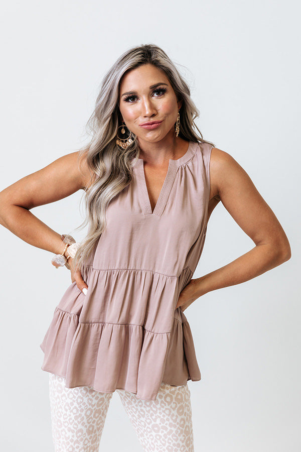 Complete your look effortlessly with our charming dusty purple hued 'Sweetest Love Shift Top' featuring lightweight flowy material, a rounded neckline with an accent v-cut notch, wide sleeveless shoulder straps, and a relaxed tiered silhouette that falls into a straight hemline! Measurements