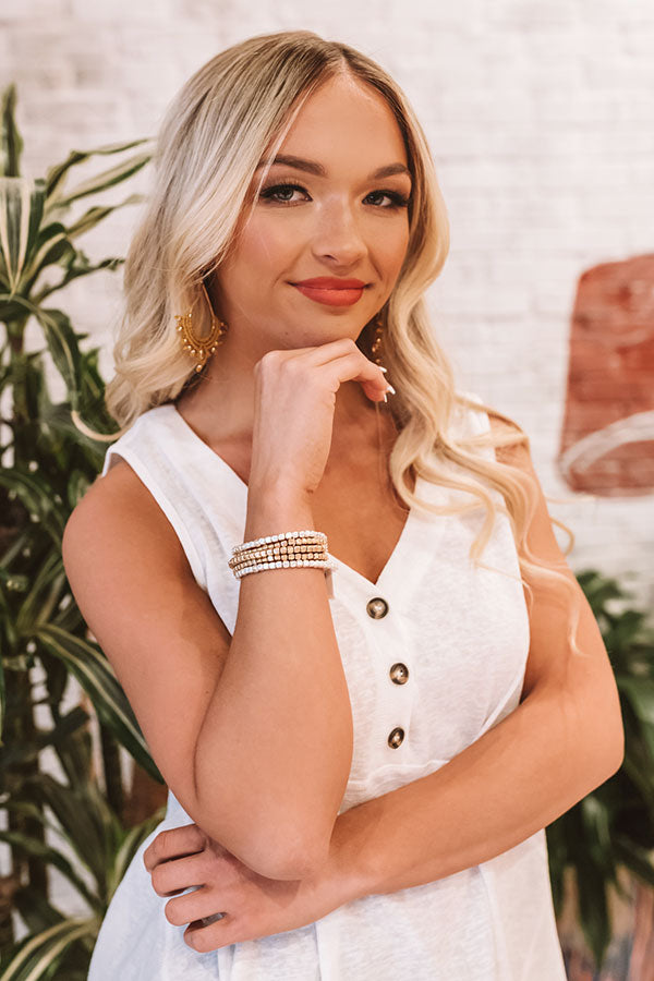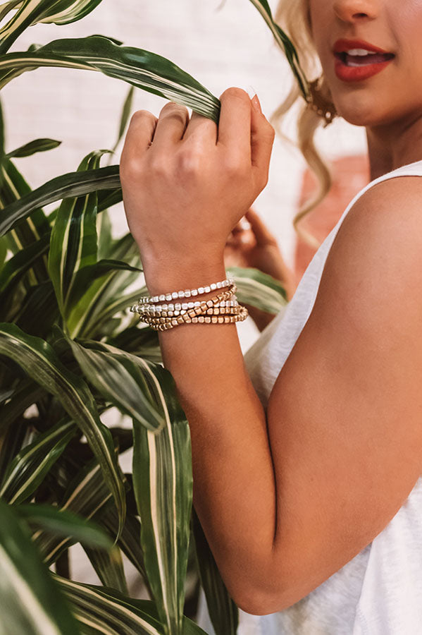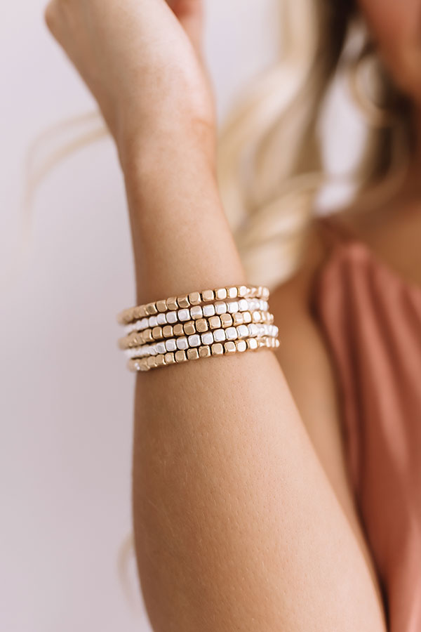 This adorable 5 piece bracelet set is the "sweetest of all" with its silver and gold beaded elastic bands!