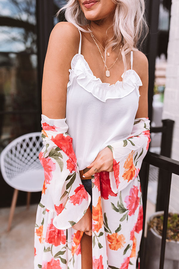 Upgrade your summer basics with our darling white 'Sweetly Spoken Shift Tank' featuring lightweight breezy material, a scooped neckline with ruffled trim detailing, adjustable spaghetti straps, and a relaxed silhouette that falls into a straight hemline!