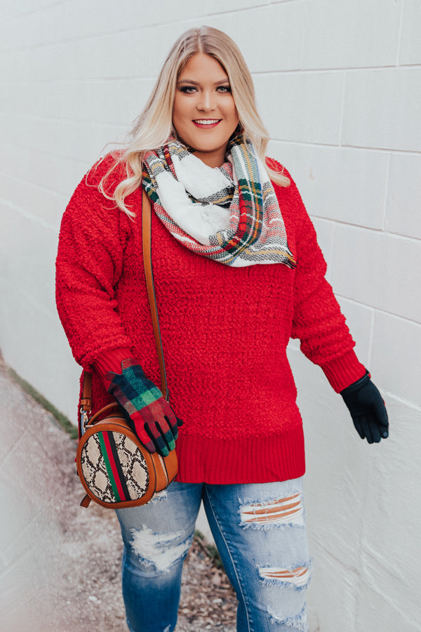 Swiss Flurries Popcorn Knit Sweater in Red Curves