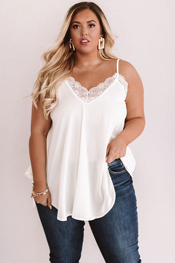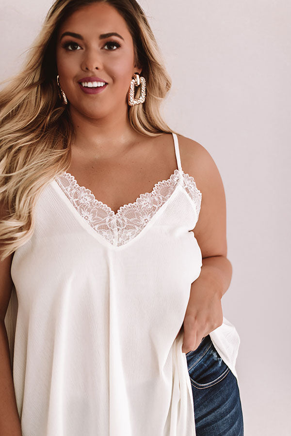 Plus Size - Everyone in the city will be swooning over you when you wear this white shift tank featuring adjustable spaghetti straps, lace trim, semi sheer fabric, a v-neck, and a rounded hem! This versatile piece can be worn year round with shorts, sandals, a breezy duster, and a tote in the summer or with jeans, booties, a jacket, and a crossbody in the fall! Measurements