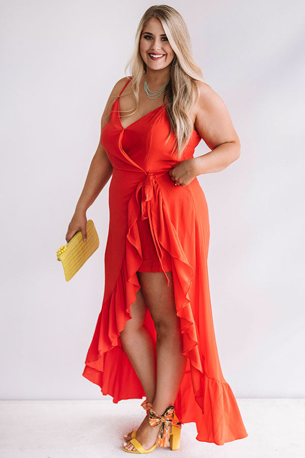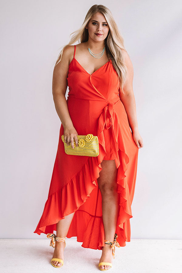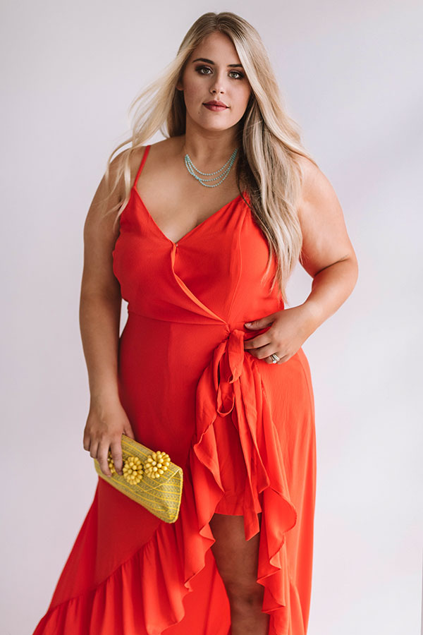 Tahiti And Twirls Ruffle Dress In Tangerine Curves