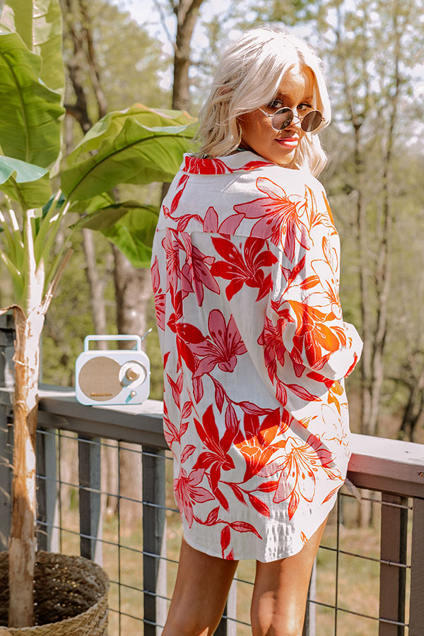 Make a bold entrance in our eye-catching 'Take A Second' top featuring lightweight material patterned with a pink floral print, a button up front with a collared neckline, long loose sleeves with button closure cuffs, and a relaxed silhouette that falls into a rounded hemline! on products