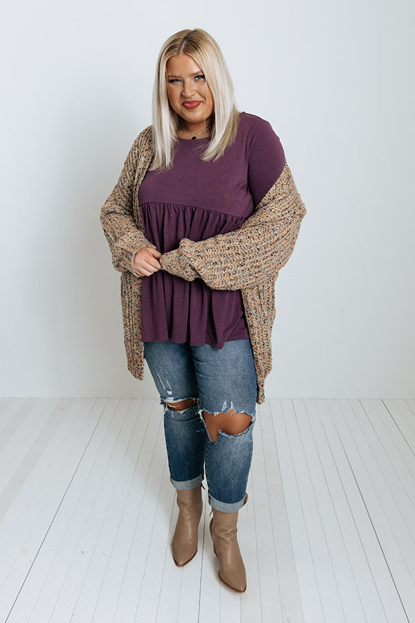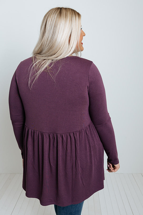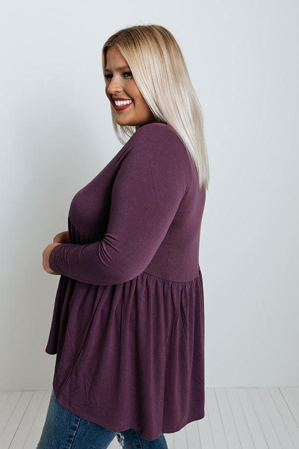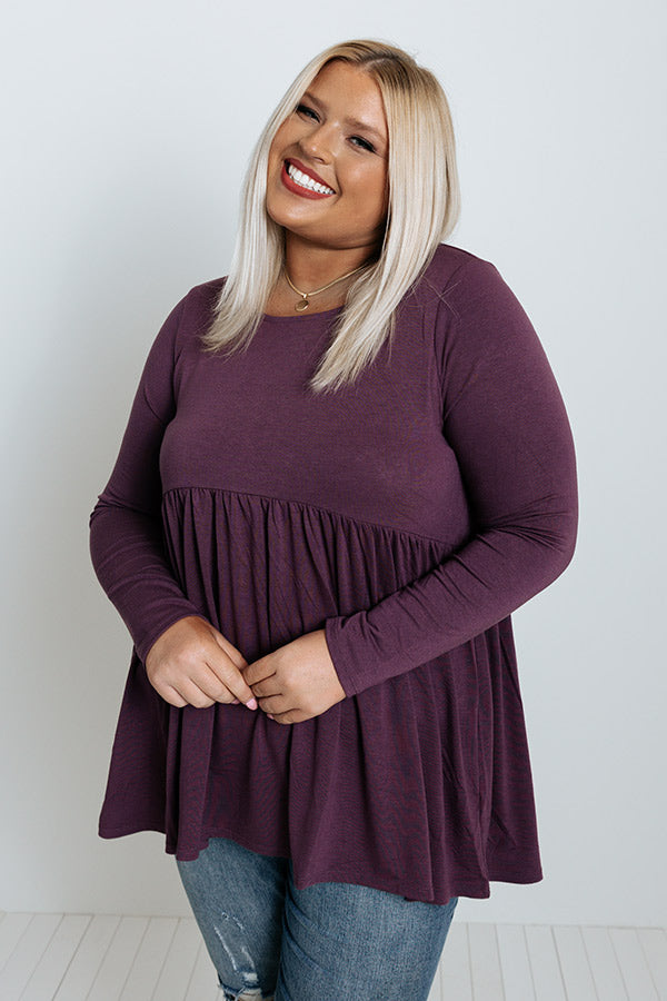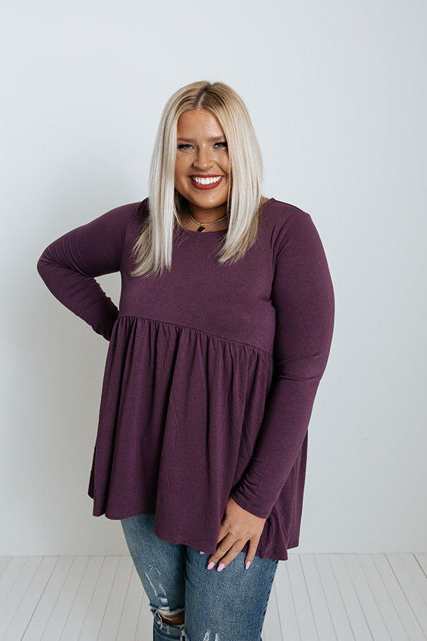 There is no better way to look casual while also looking cute than with our versatile plus size dark purple 'Take Me As I Am' top featuring soft lightweight and flowy material, a rounded neckline, long sleeves, and a relaxed but flirty babydoll top that falls into a straight hemline! Measurements