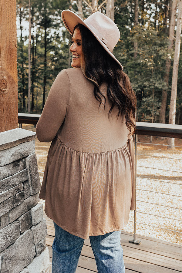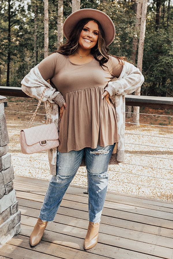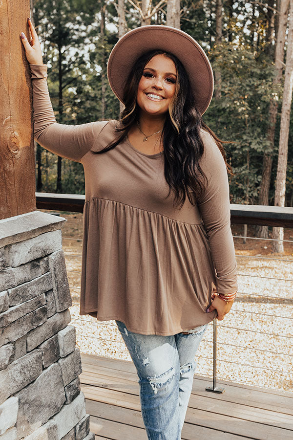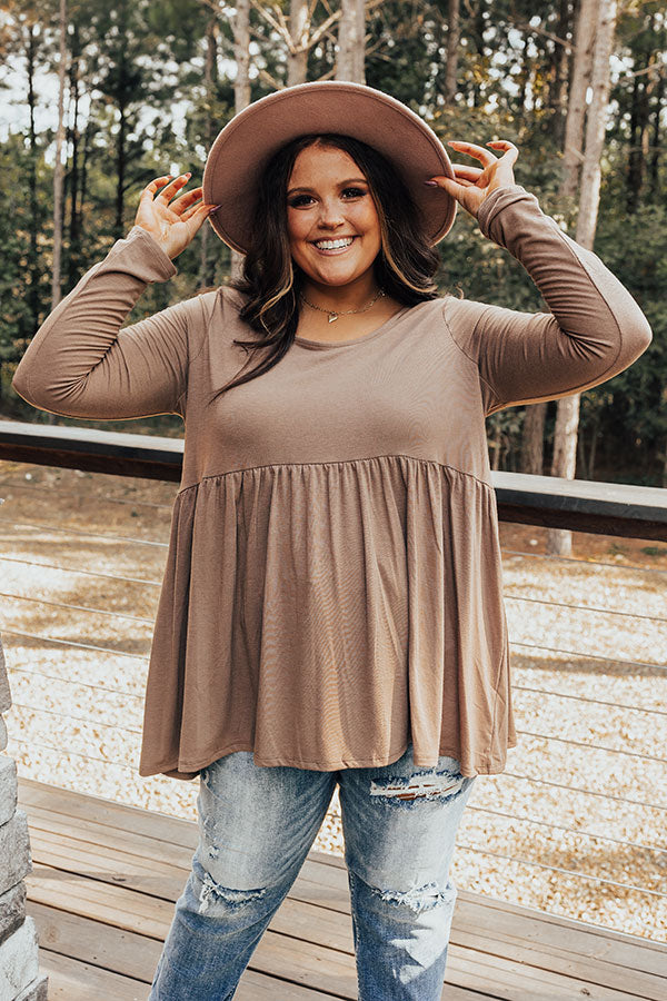 There is no better way to look casual while also looking cute than with our versatile plus size taupe colored 'Take Me As I Am' top featuring soft lightweight and flowy material, a rounded neckline, long sleeves, and a relaxed but flirty babydoll top that falls into a straight hemline! Measurements