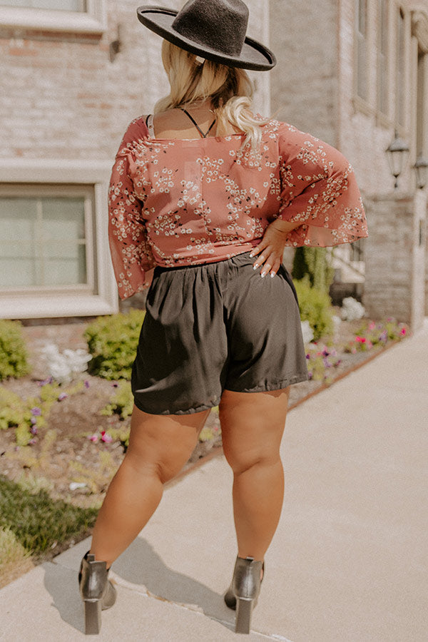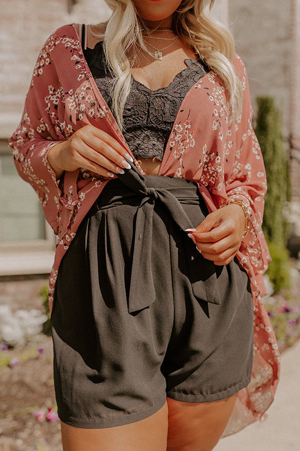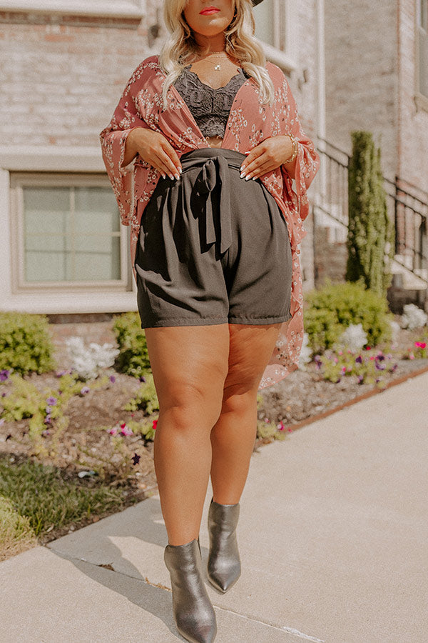 Perfect for dressing up or down, our versatile black plus size 'Take Me To Venice' shorts featuring lightweight breezy material, a high elastic waistline with a tie closure, and a relaxed but flattering silhouette that ends in straight upper-thigh length hemlines!
