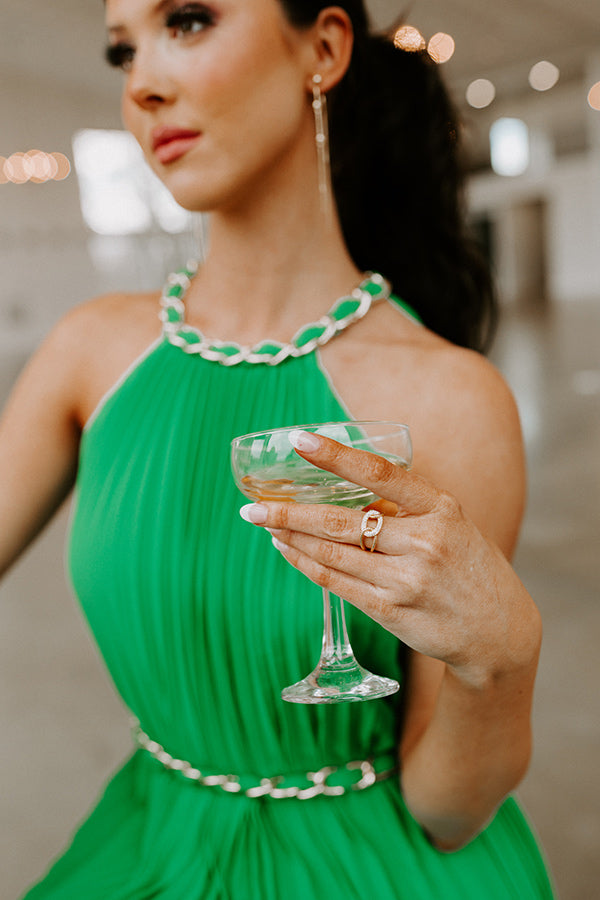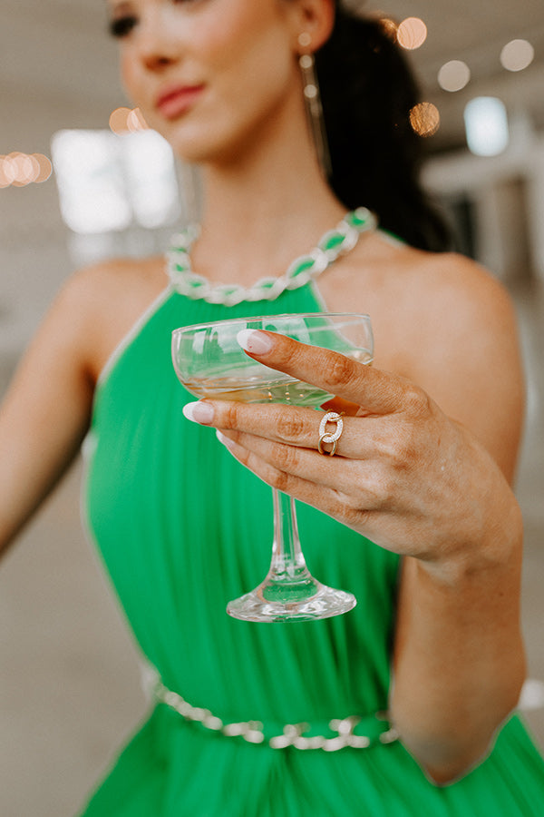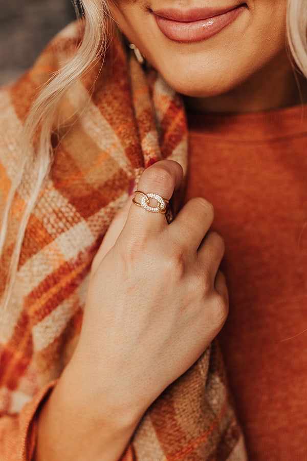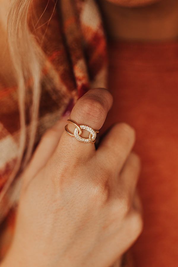 Take on the world in style with this darling ring featuring gold and rhinestone chain links! This ring can comfortably fit a size 6.