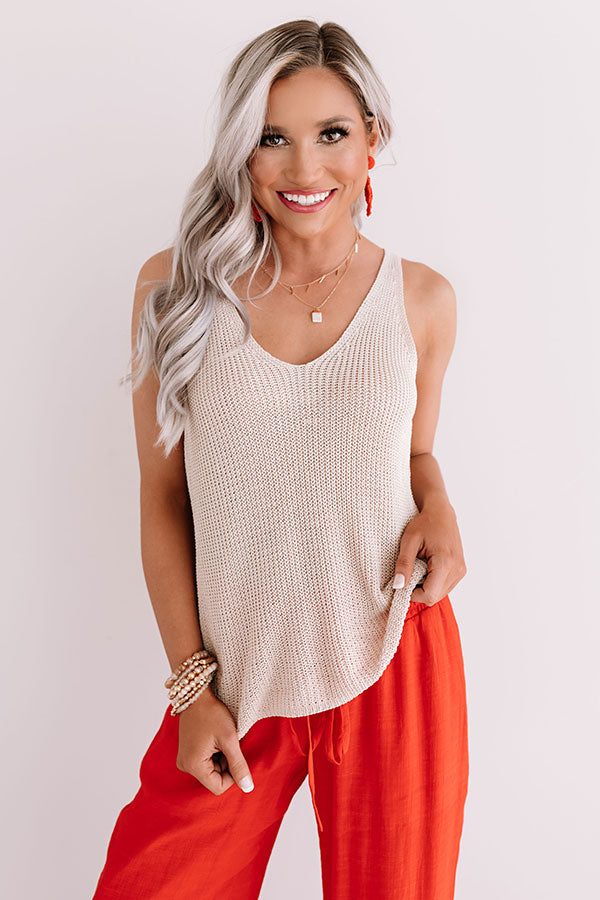 Taking Aim Knit Tank In Iced Latte