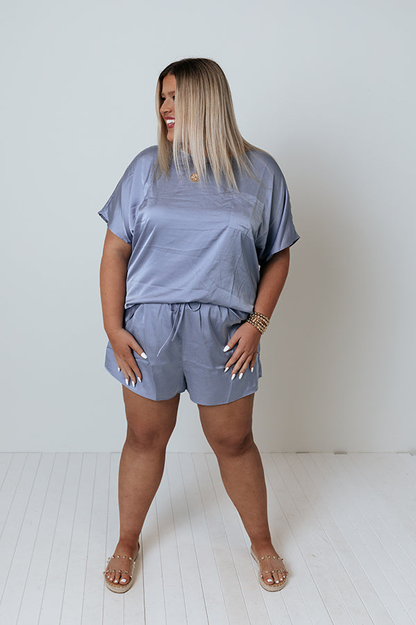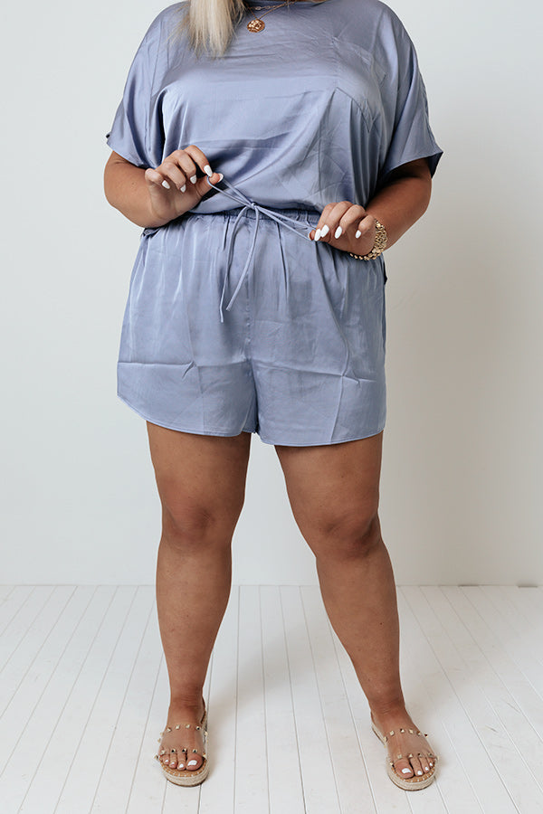 Plus Size - Lounge around in comfort and style with our adorable airy blue hued 'Talk All Night' shorts featuring lightweight and flowy satin material, an elastic waistline with a tie belt, and a relaxed silhouette that ends in a straight upper-thigh length hemline!