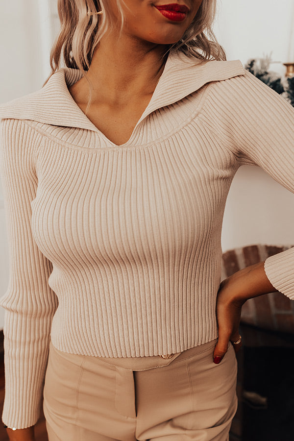 Keep it simple but stylish with our pretty light beige colored 'Talk Of Tinseltown Top' featuring soft and stretchy material with subtle vertical ribbed texturing, a v-cut neckline with a flat collar, long loose sleeves, and a relaxed silhouette that falls into a straight hemline!