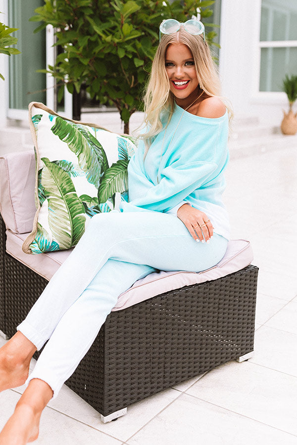 Relax all weekend long in style with our adorable ocean wave colored "Tea And Cozy" joggers featuring soft lightweight material with subtle ombre detailing, an elastic waistline with a tie belt, and a relaxed pants silhouette that falls into fitted ankle length hemlines! This comfy piece pairs perfectly with our matching "Tea And Cozy Ombre Sweatshirt in Ocean Wave," a scrunchie, and some fuzzy slippers for the ultimate two-piece lounge look! Measurements
