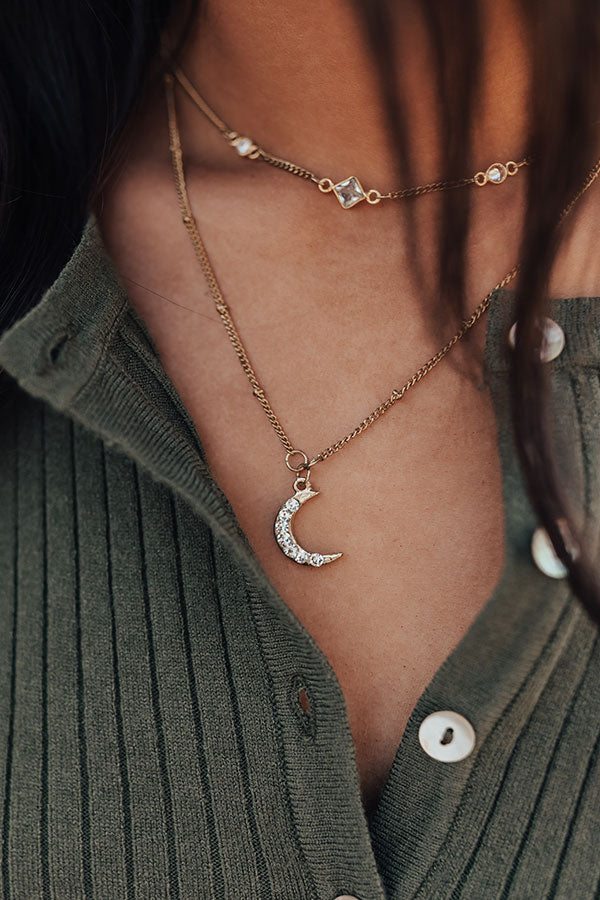 Add a touch of sparkle to your OOTD by accessorizing with our dainty vintage gold "Telling Stories Necklace" featuring a choker with small clear gemstone accents and a longer chain with a shimmering rhinestone crescent moon pendant!