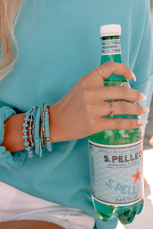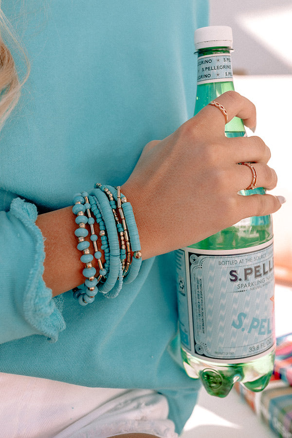 Add a pop of color to your arm candy with our pretty 'Telling The Truth Bracelet Set' featuring eight turquoise and gold beaded stretch pieces!