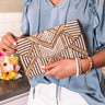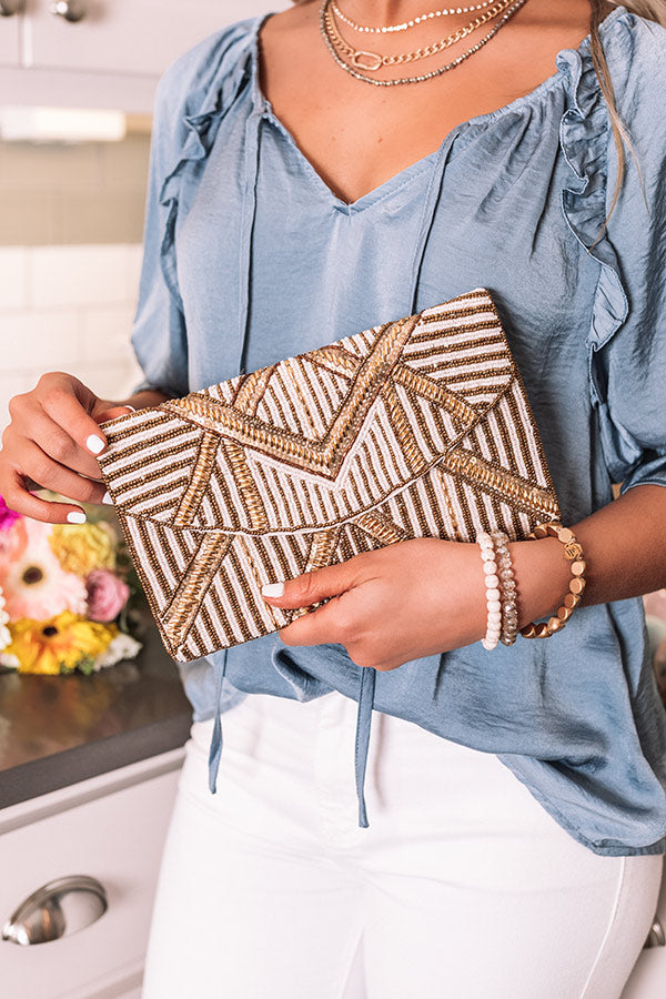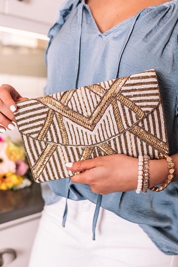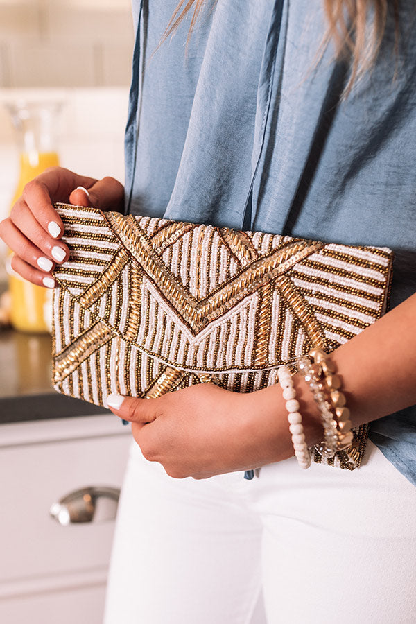 People tend to LOVE this crossbody, and we don't blame them! It features intricate white and gold beaded embellished detailing, a rounded flap closure, and a spacious rectangular pouch!