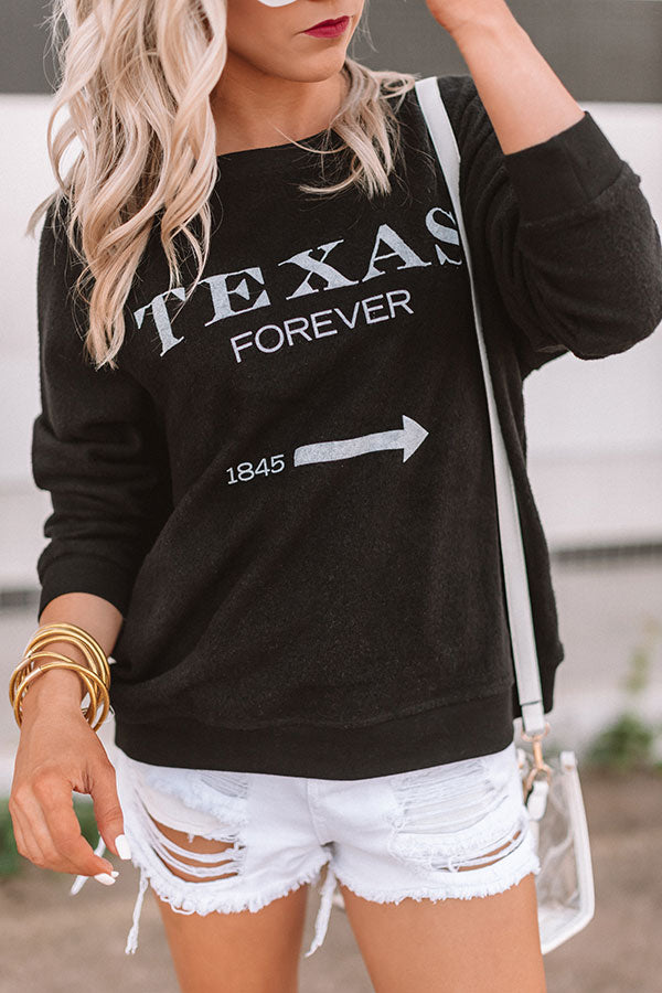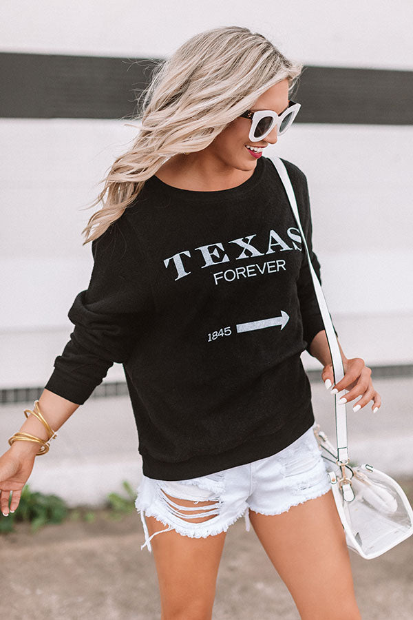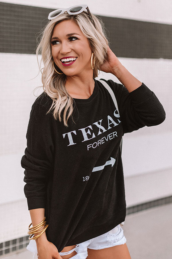 This black sweatshirt is for all you ladies out there that will be Texas fans forever! It features a high neckline, long sleeves, and a loose comfy bodice that is sure to keep you warm! Measurements