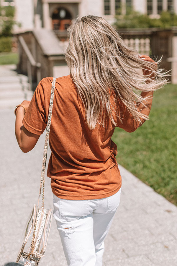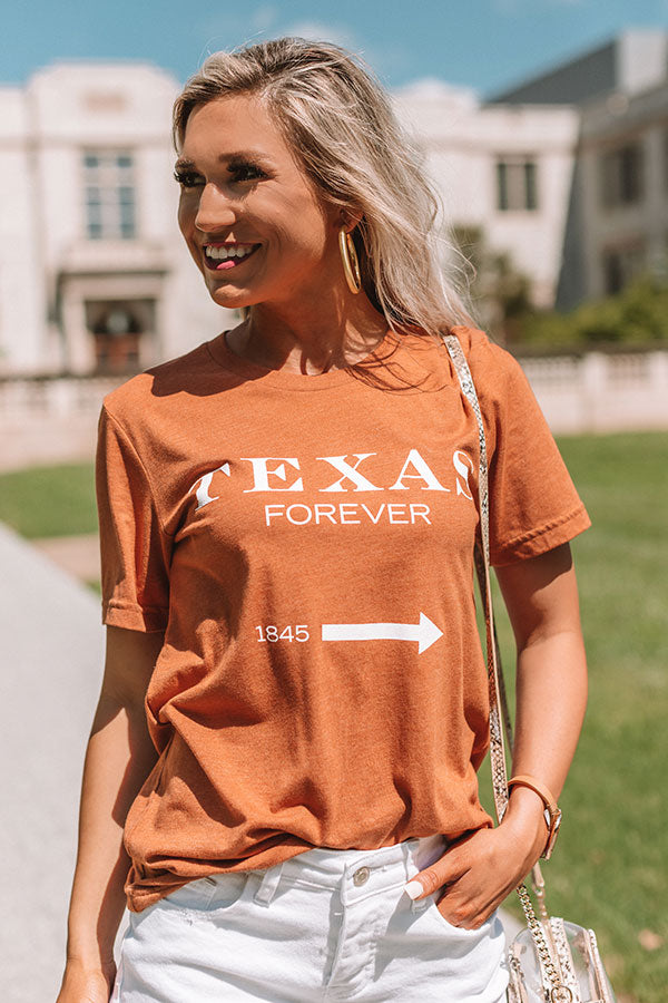 This orange shift tee is for all you ladies out there that will be Texas fans forever! It features a high rounded neckline, short sleeves, a cute Texas graphic on the front, and a loose comfy bodice that is sure to keep you looking sporty chic!