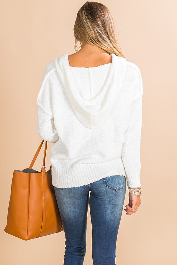 {We've got that lovin' feelin', that oh so cozy feeling} Bring back that cozy feeling in the coziest hoodie of the season! This knit hooded shift sweater has a drawstring neckline, long fitted sleeves & a relaxed looped knit bodice. Pair this knit hoodie with your favorite distressed denim & sneakers to run errands around town, or trade in your sneakers for booties to grab brunch with the girls.