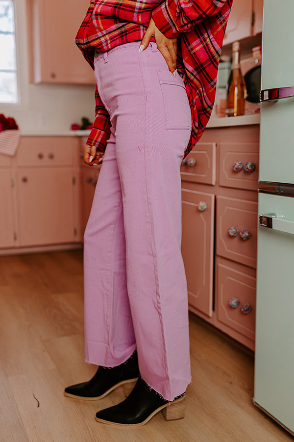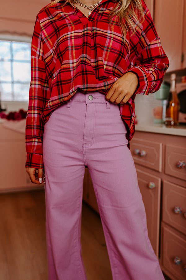 - A high waistline with belt loops and a hidden zip fly and button closure
