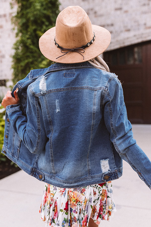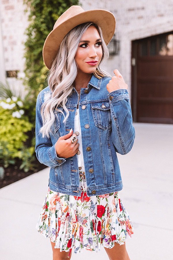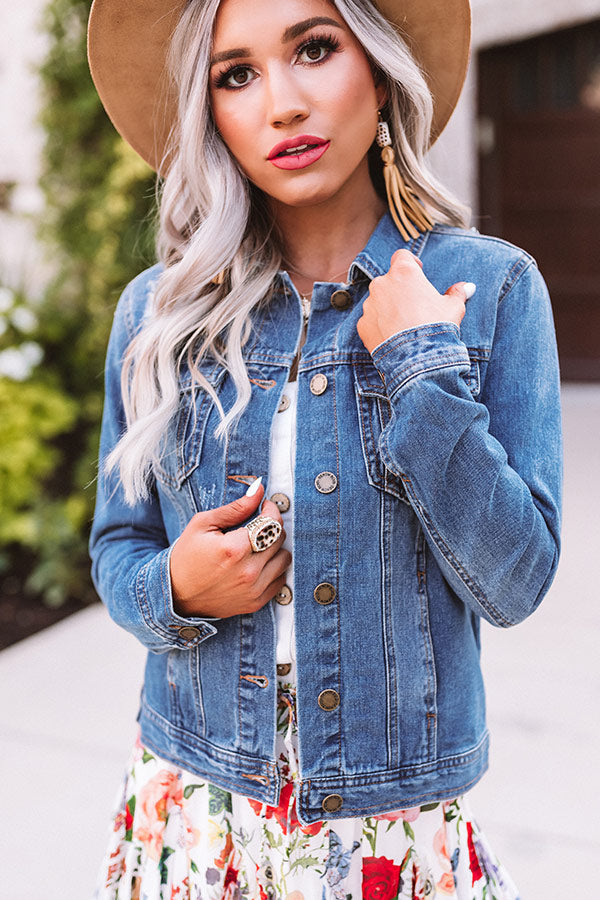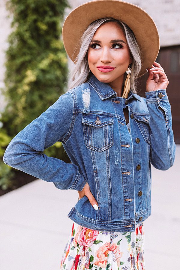 Your seasonal outfits will be envied when you complete your look with "The Aibileen" denim jacket featuring lightweight medium wash material, distressed detailing, a button down front with a collared neckline, two accent chest pockets with flap closures, long loose sleeves button closure cuffs that can be rolled, and a relaxed silhouette that falls into a straight hemline! You can wear this trendy piece with a camisole or summer dress underneath or you can put it over a fall blouse to add some edginess to your pristine transitional style!