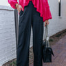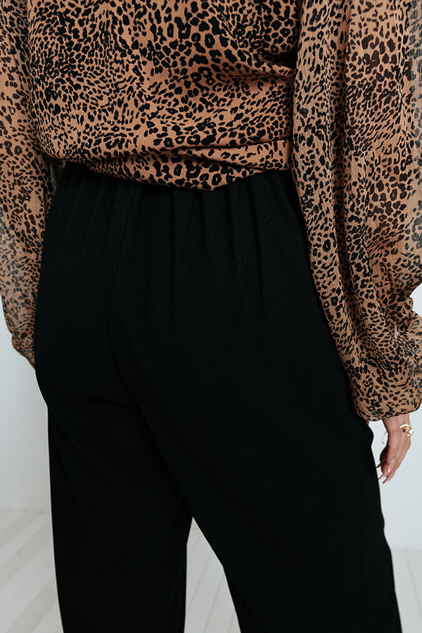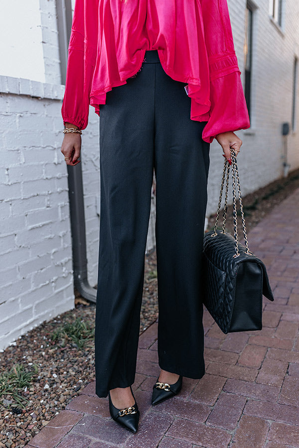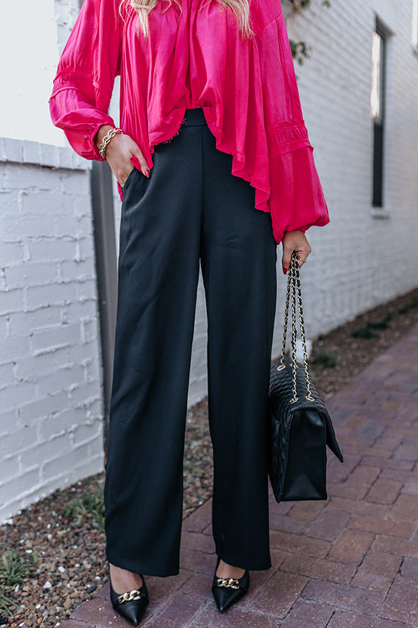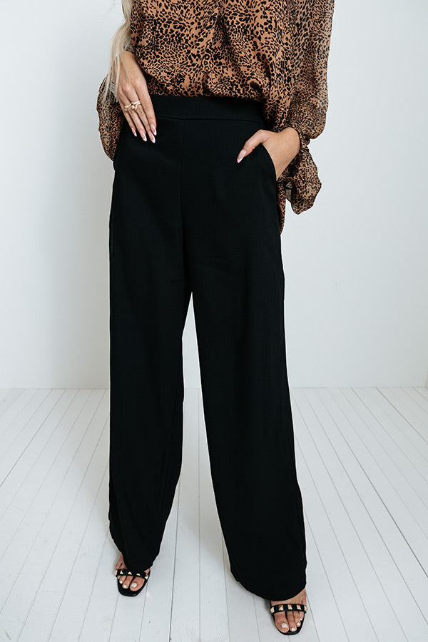 Step into style in our striking black 'Amina' pants featuring lightweight breezy material, a high waistline with an elastic back, hidden side pockets, and a relaxed but flattering silhouette that falls straight into ankle-length hemlines! Measurements
