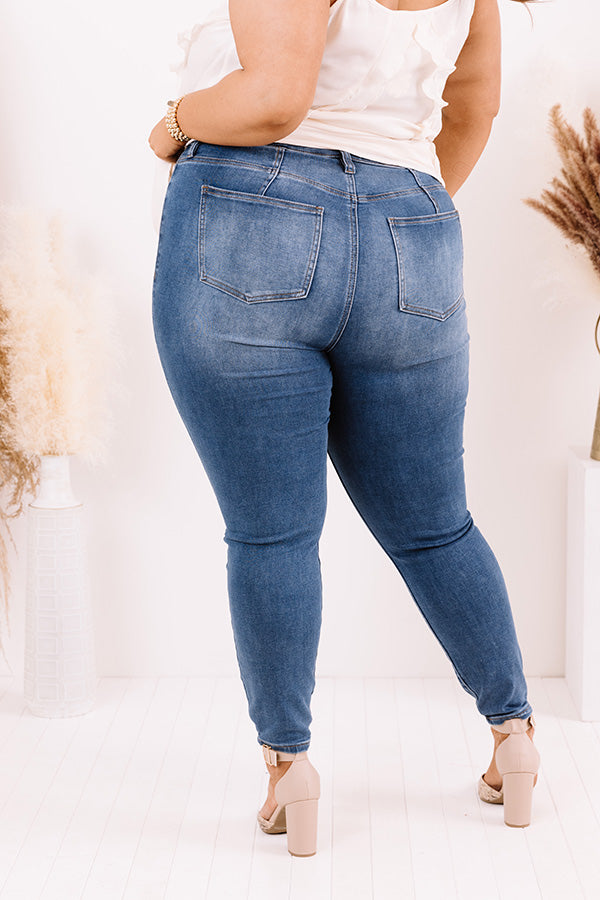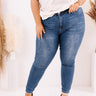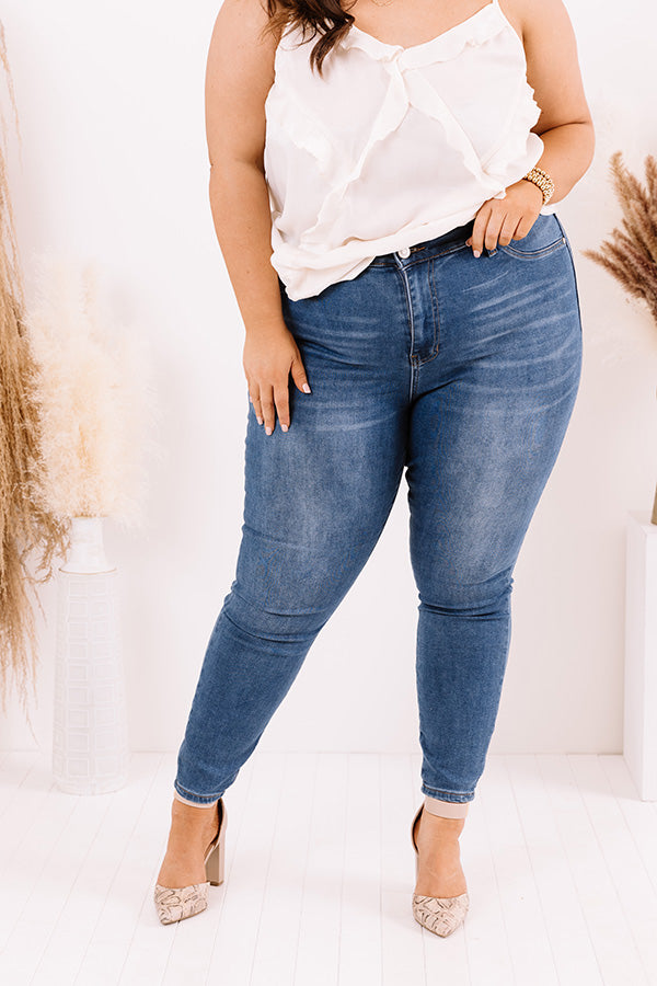 Plus Size - Life is more than just fitting into your jeans, but we believe you will LOVE the look and feel of our 'Arcadia' skinnies featuring lightweight dark wash denim material with subtle accent fading, a high waistline with belt loops, four pocket cuts, a hidden zip fly with a button closure, and a form fitting silhouette that falls into ankle-length hemlines that can be cuffed! Measurements