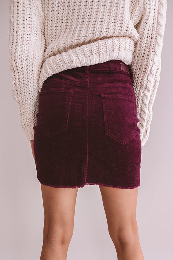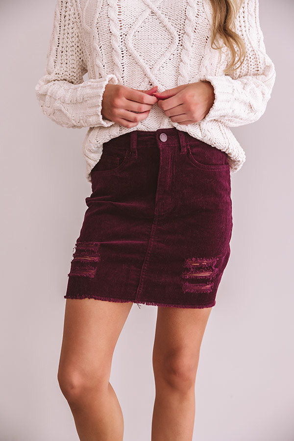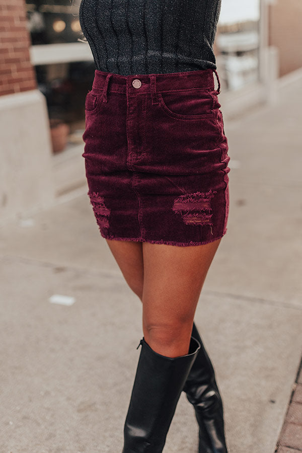 The Ashton Corduroy Distressed Skirt In Windsor Wine