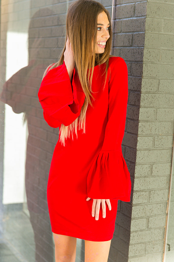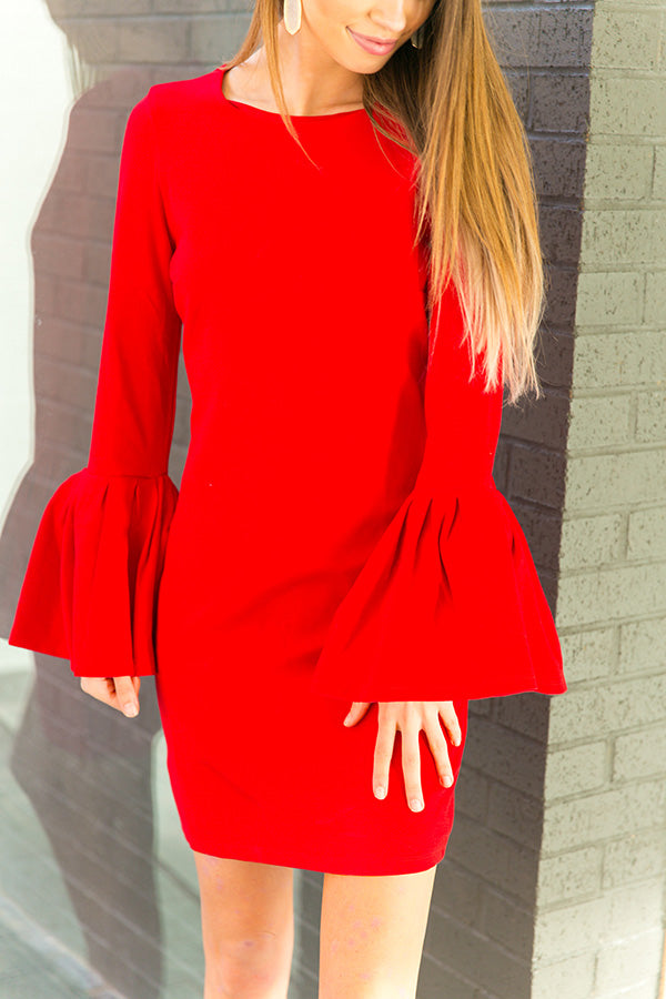 Va-va Voom! Your closet is begging for this breathtaking Date Night Approved number to be added to it! The flared bell sleeves at the end of the long sleeves are a detail that you will look stunning in no matter the occassion! Better hurry and add this dress to your cart, Babe!