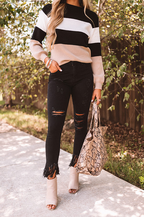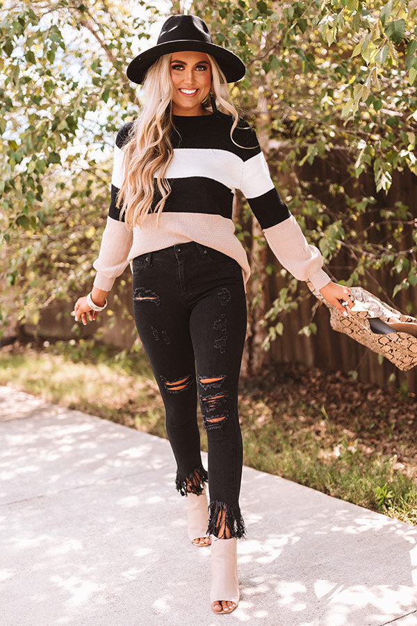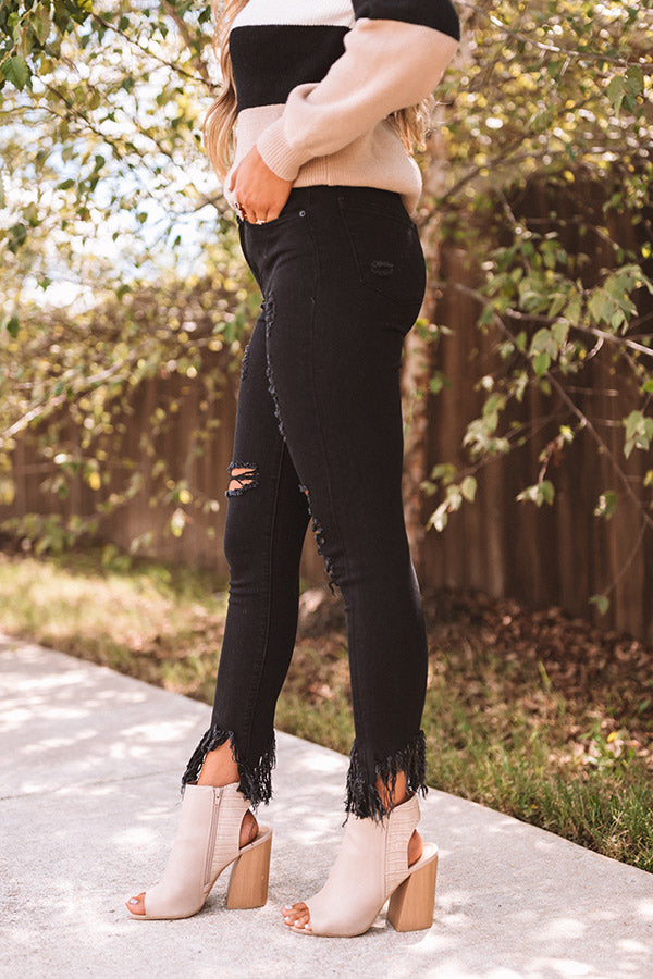 Life is more than just fitting into your jeans, but we believe you will LOVE the look and feel of our black "Barkley" skinnies featuring lightweight denim material with distressed detailing, a midrise waistline with belt loops, four pocket cuts, a hidden zip fly with a button closure, and a form fitting silhouette that falls into ultra frayed ankle-length hemlines! These trendy bottoms will take you from season to season when you wear with your favorite open toed heel, sunnies, and tank top in the summer and with booties, a faux suede hat, and a sweater in the fall!