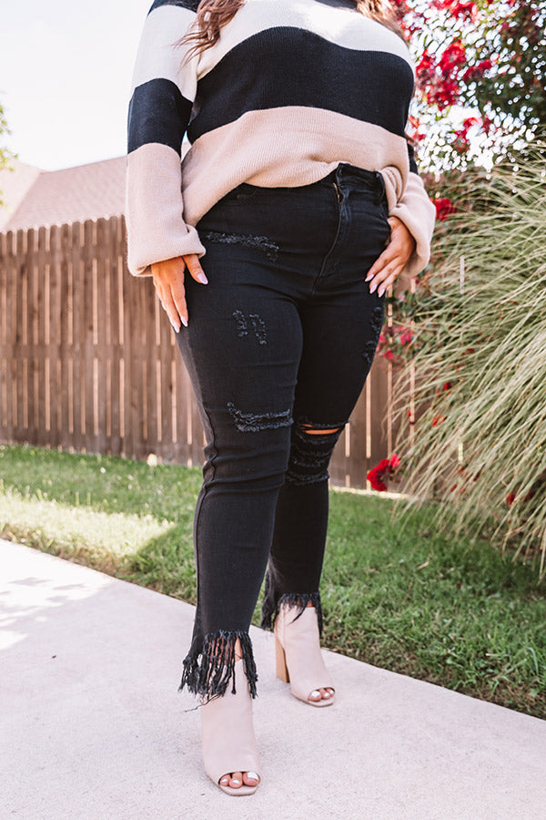 Plus Size - Life is more than just fitting into your jeans, but we believe you will LOVE the look and feel of our black "Barkley" skinnies featuring lightweight denim material with distressed detailing, a midrise waistline with belt loops, four pocket cuts, a hidden zip fly with a button closure, and a form fitting silhouette that falls into ultra frayed ankle-length hemlines! These trendy bottoms will take you from season to season when you wear with your favorite open toed heel, sunnies, and tank top in the summer and with booties, a faux suede hat, and a sweater in the fall!