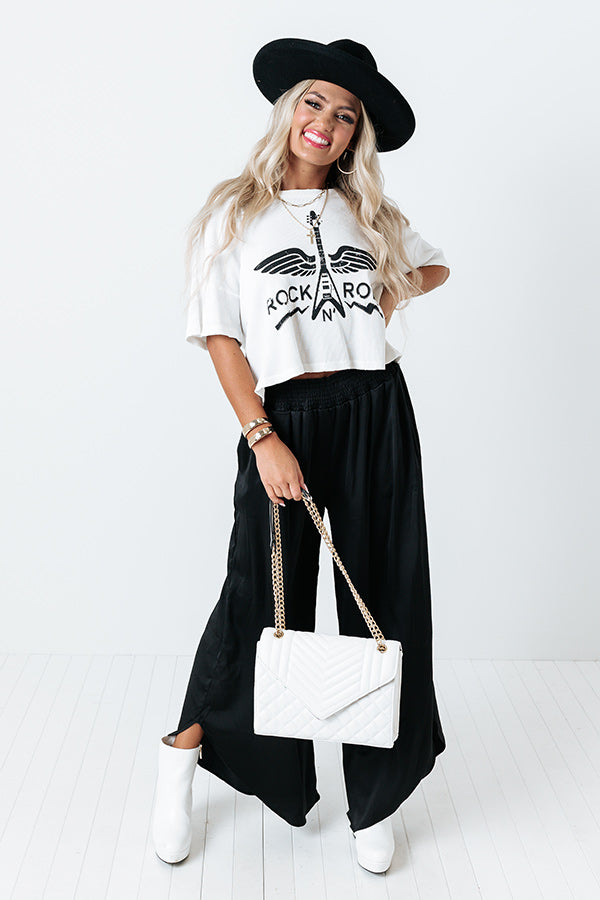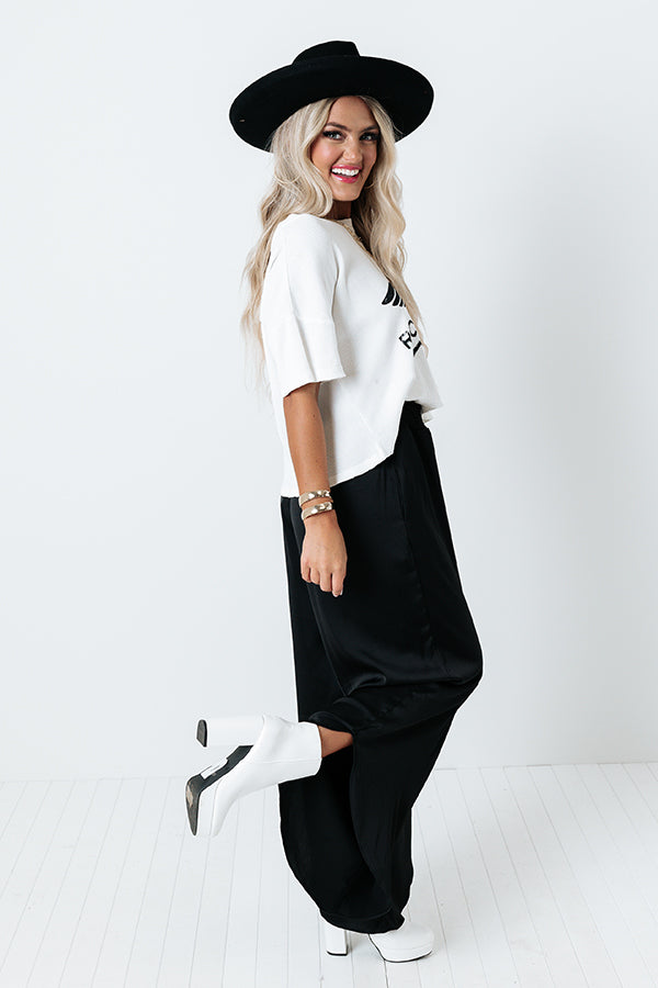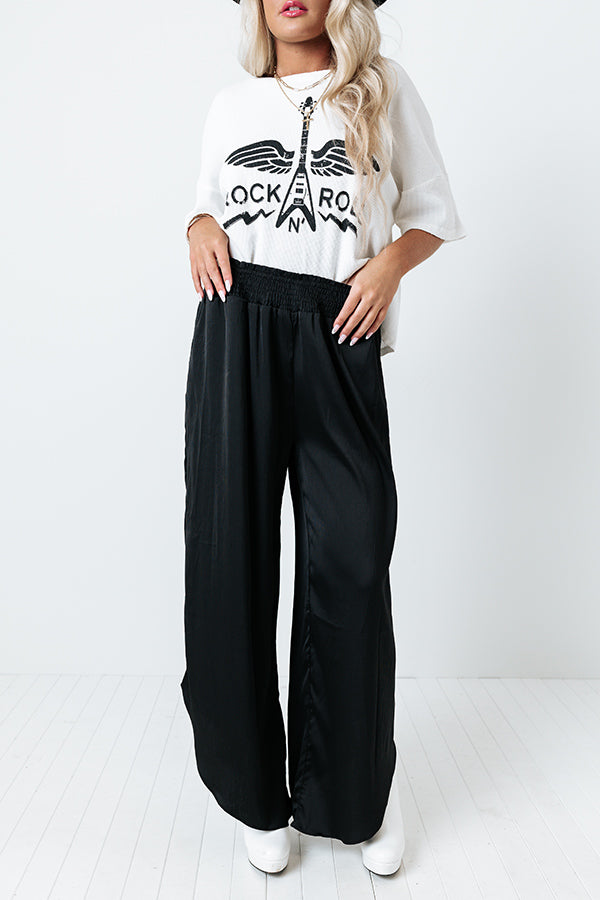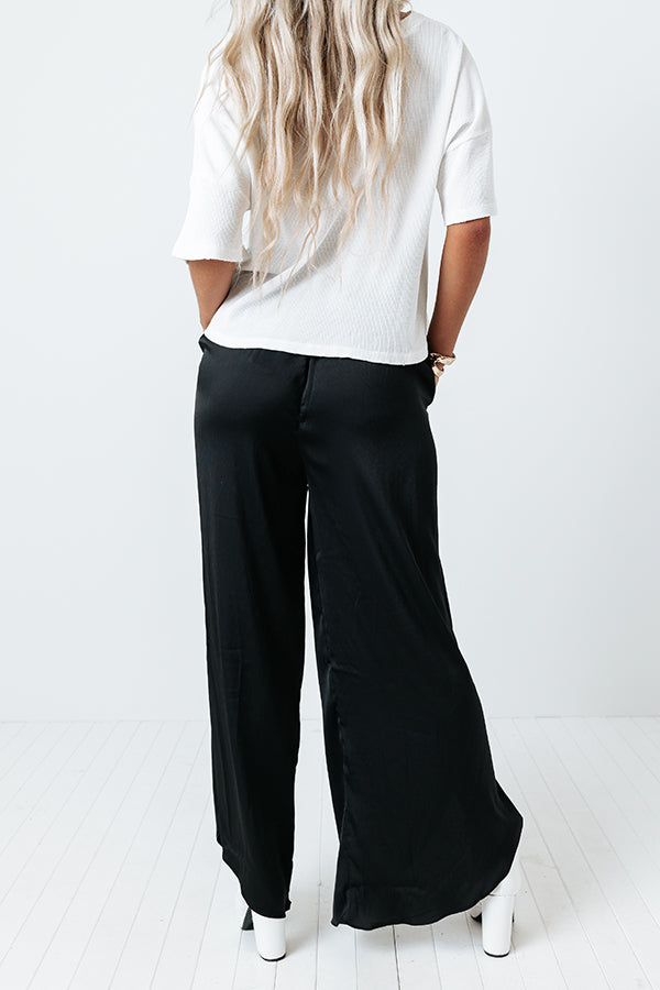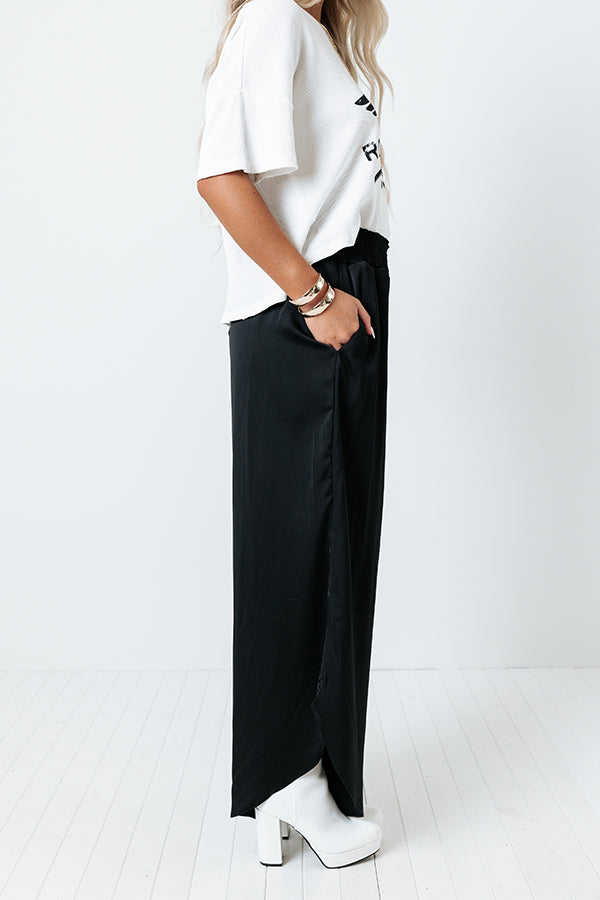 Step out in style with our charming black 'Barrett' pants featuring lightweight breezy material, a high elastic waistline, accent side pockets, and a relaxed silhouette that falls straight into rounded ankle-length hemlines!