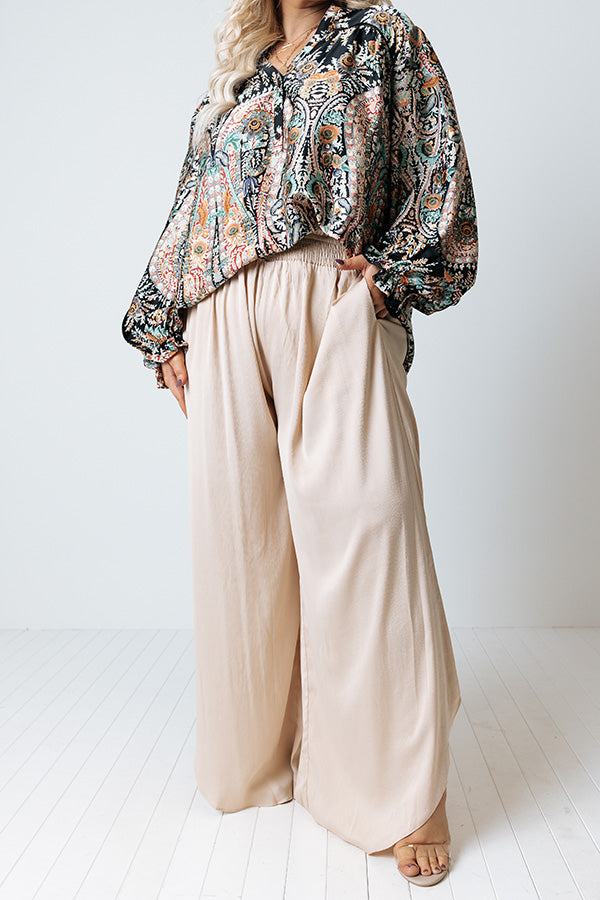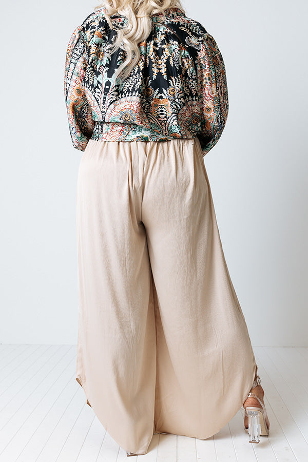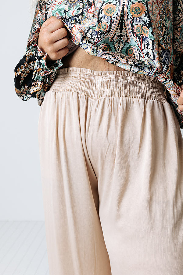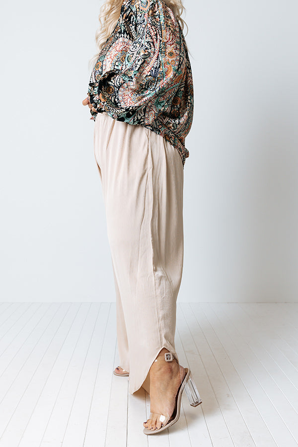 Step out in style with our charming champagne colored plus size 'Barrett' pants featuring lightweight breezy material, a high elastic waistline, accent side pockets, and a relaxed silhouette that falls straight into rounded ankle-length hemlines! Measurements