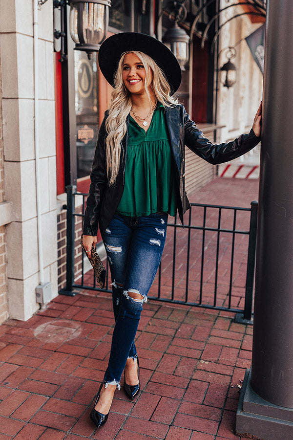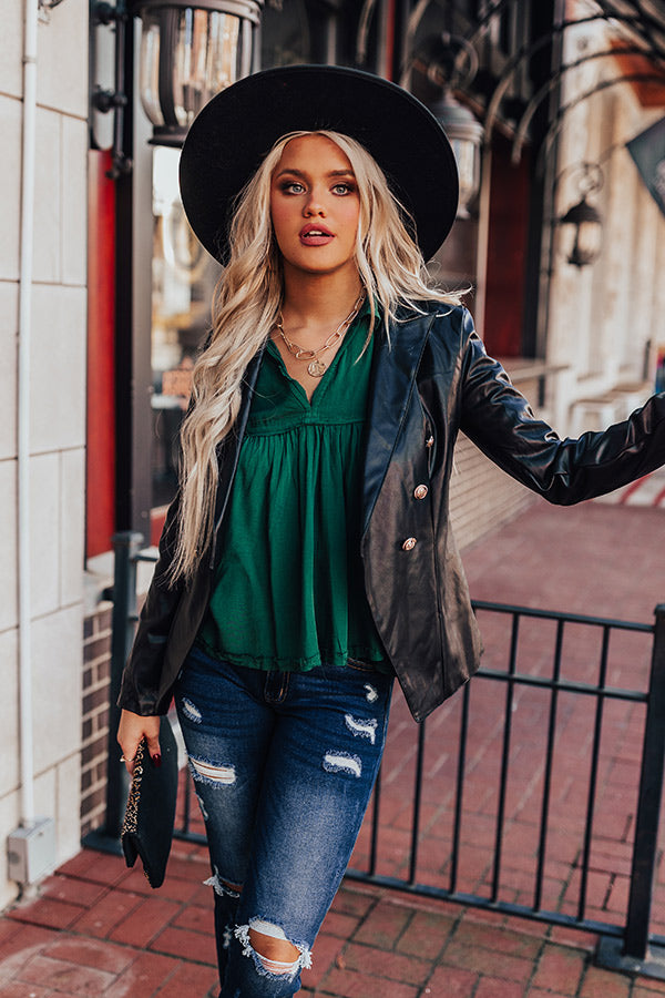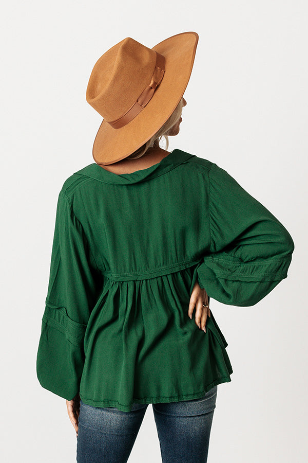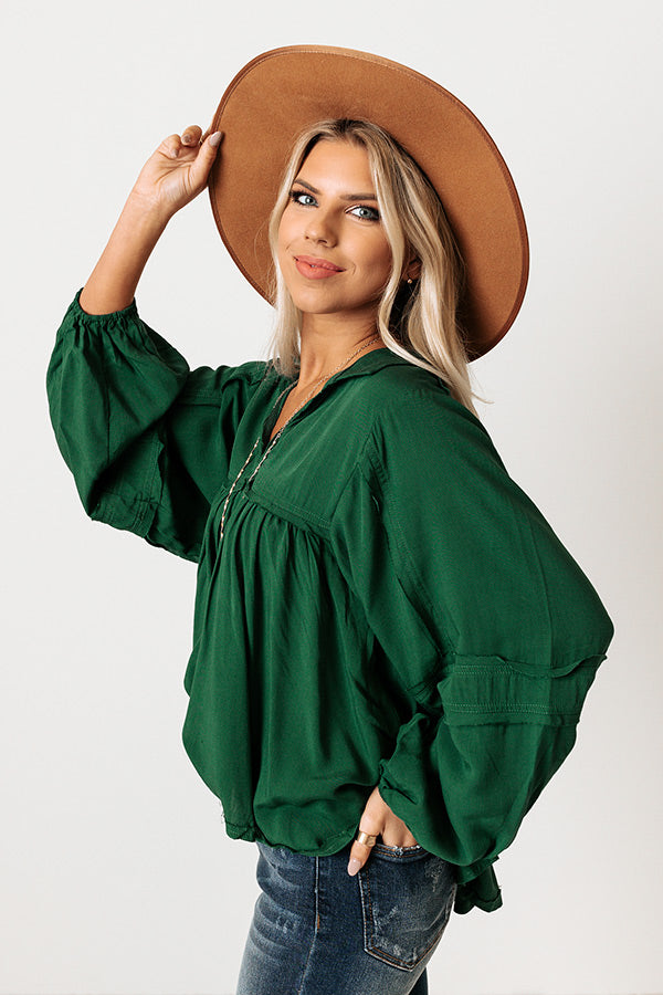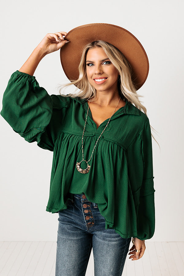 The Bayle Babydoll Shift Top in Hunter Green