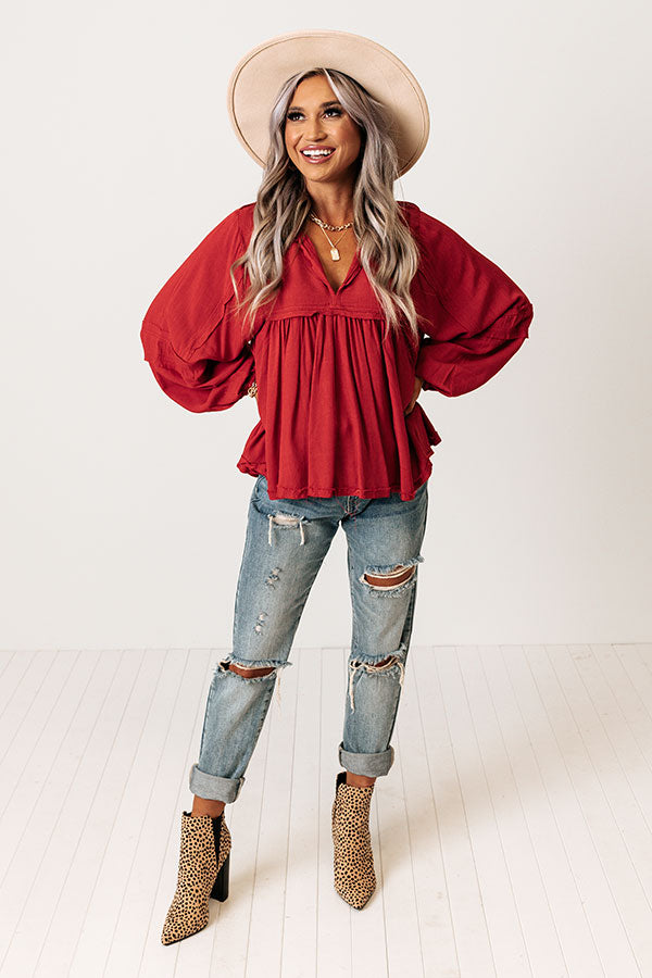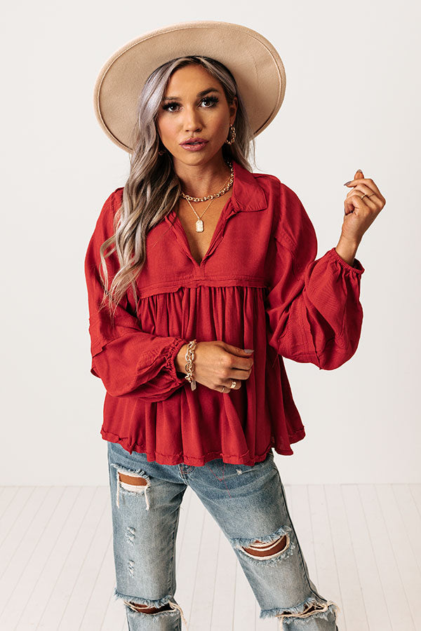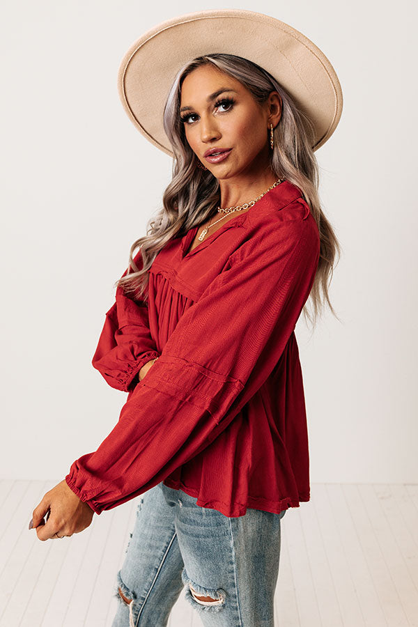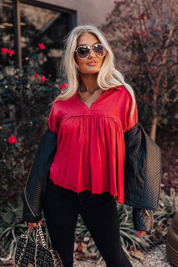 The Bayle Babydoll Shift Top in Wine