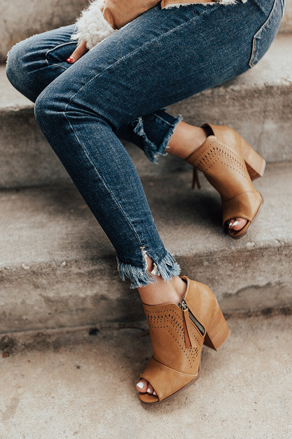 The Baylor Faux Leather Peep Toe Bootie In Khaki