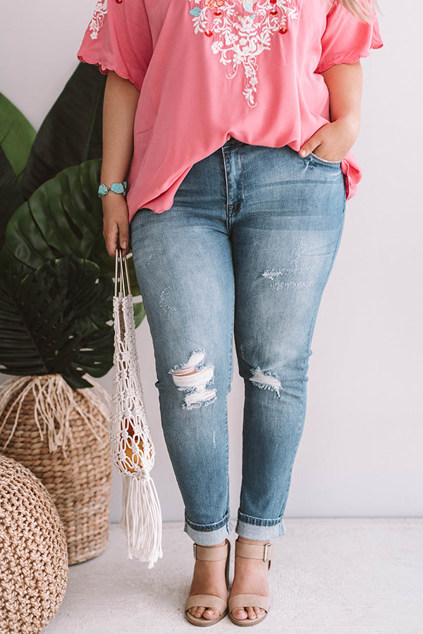 Plus Size - These light wash distressed denim jeans have a comfortable mid rise fit, a great stretchy fitted feel & a skinny pant leg with distressing throughout & an ankle length hem.
