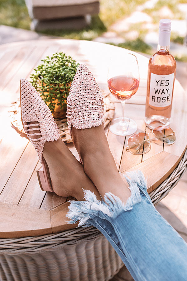 Slide from season to season in style with our adorable light pink 'Bellview' flat featuring lightweight woven material with cutout side detailing, pointed closed toes, a flat sole, and a slip on silhouette! If you have a foot that is more wide than narrow, we recommend sizing up a 1/2 size.