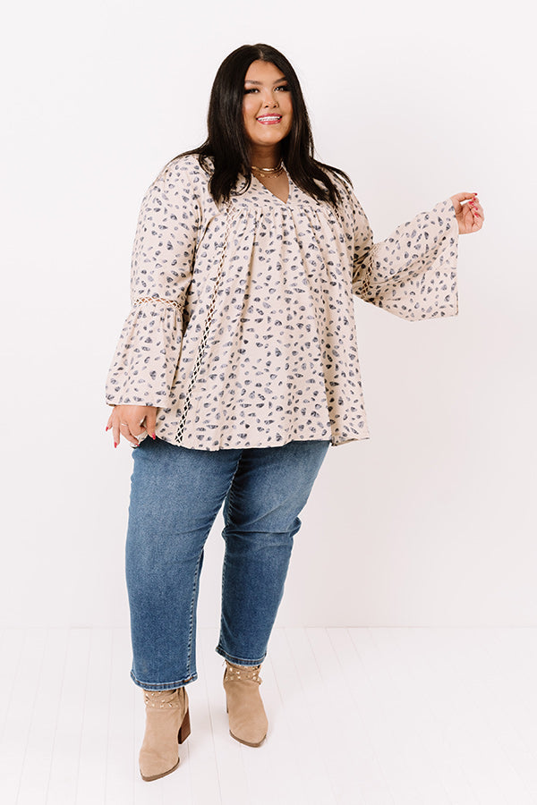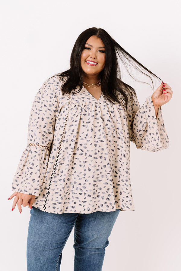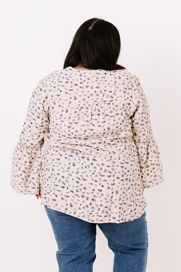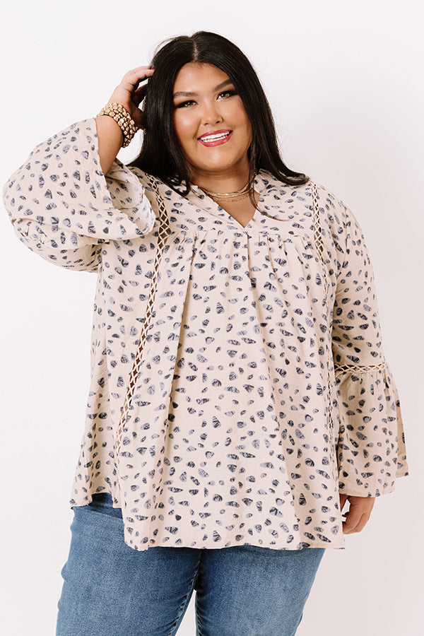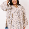 Plus Size - We have the best news...our fave new transitional top just dropped! This birch colored cutie features lightweight flowy material patterned with a unique spotted print, a v-cut neckline, subtle cut out detailing, loose 3/4-length sleeves, and a relaxed babydoll silhouette that falls into an uneven hemline! Measurements