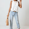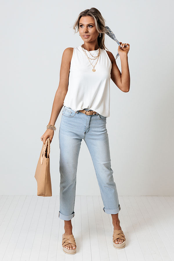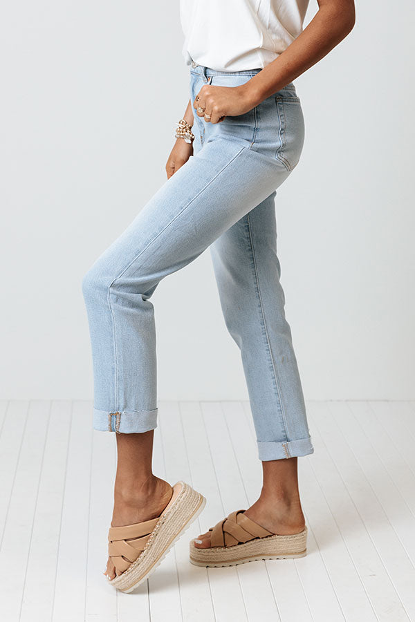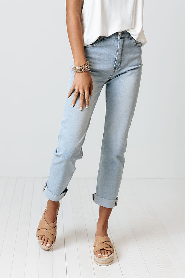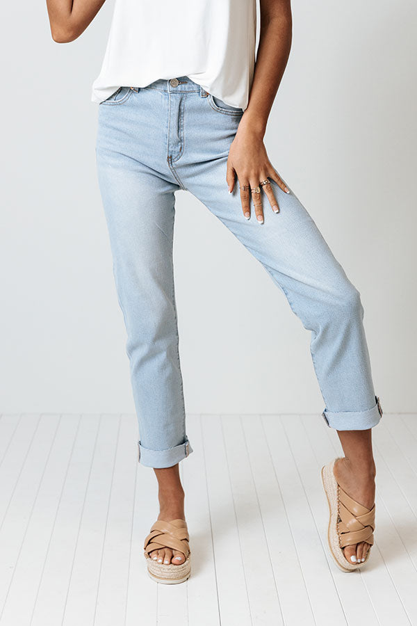 Our new fave summer denim just dropped! The timeless 'Beta' jean featuring lightweight light wash denim material with subtle accent fading, a high waistline with belt loops, a classic five pocket cut, a hidden zip fly with a button closure, and a flattering silhouette that falls straight into cuffed ankle-length hemlines! Measurements