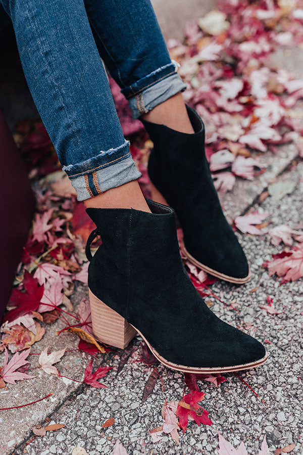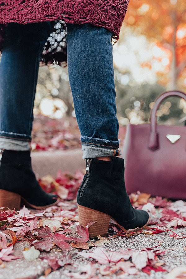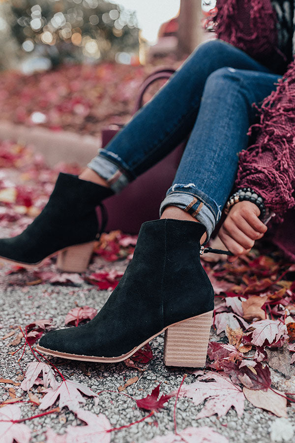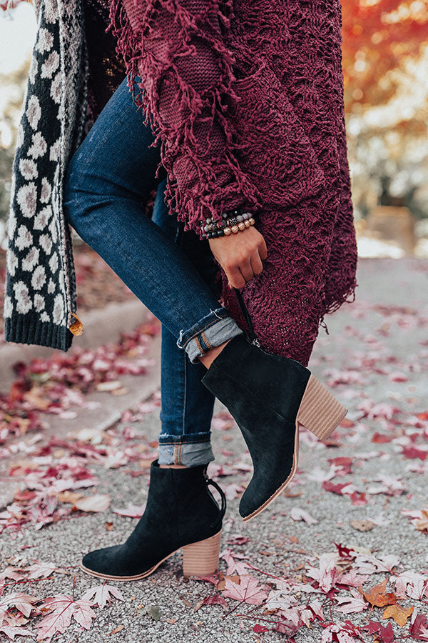 Strut in to fall in style with our adorable black "Blaire" bootie featuring faux suede material, a tassel heel zipper, 3-inch block heels, and a pointed closed toe!