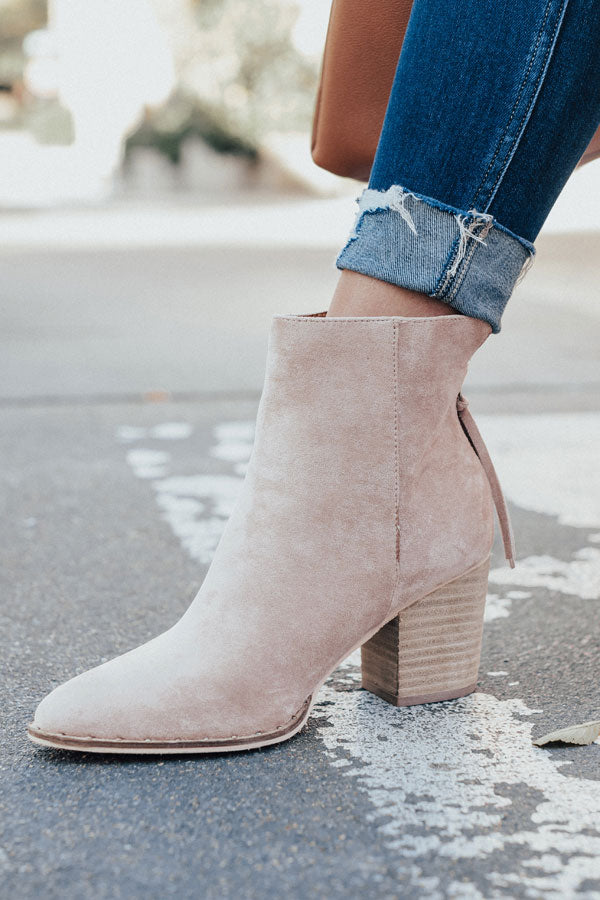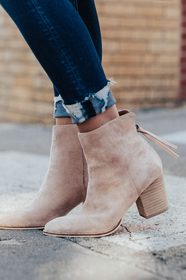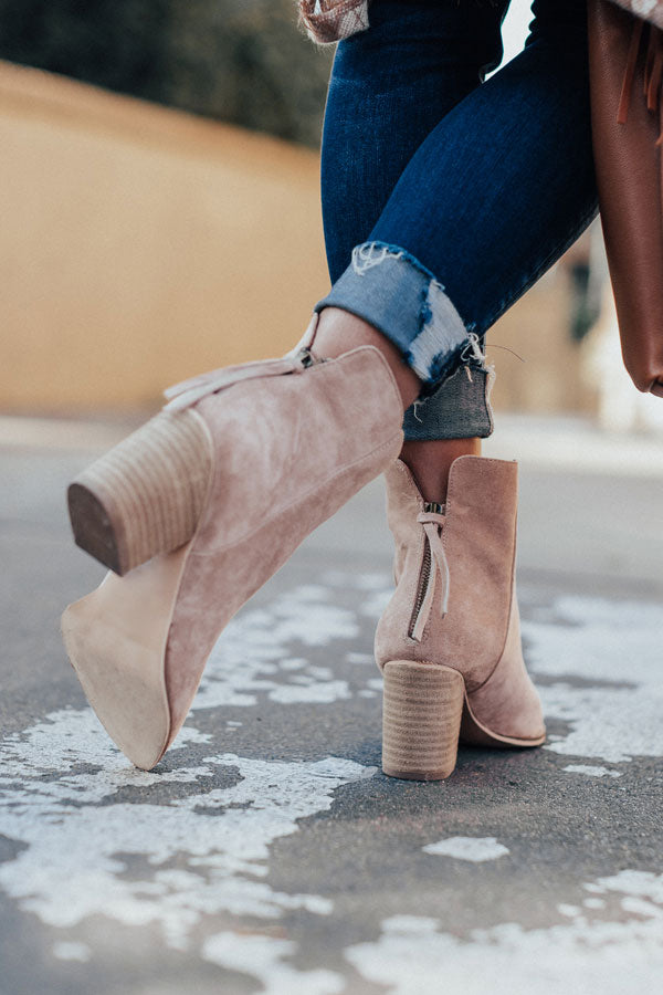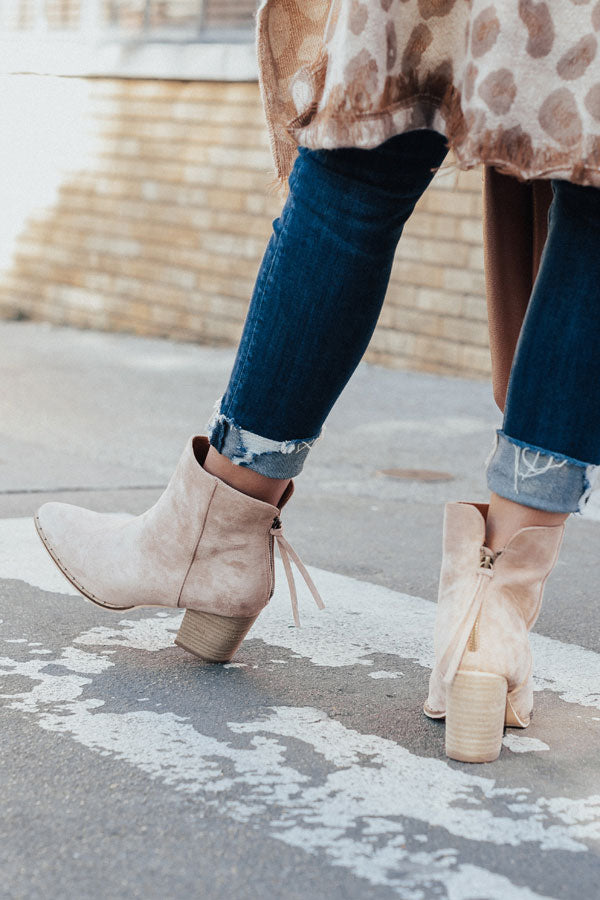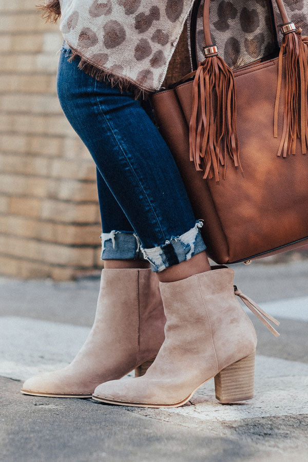 Strut in to fall in style with our adorable light latte colored "Blaire" bootie featuring faux suede material, a tassel heel zipper, 3-inch block heels, and a pointed closed toe!